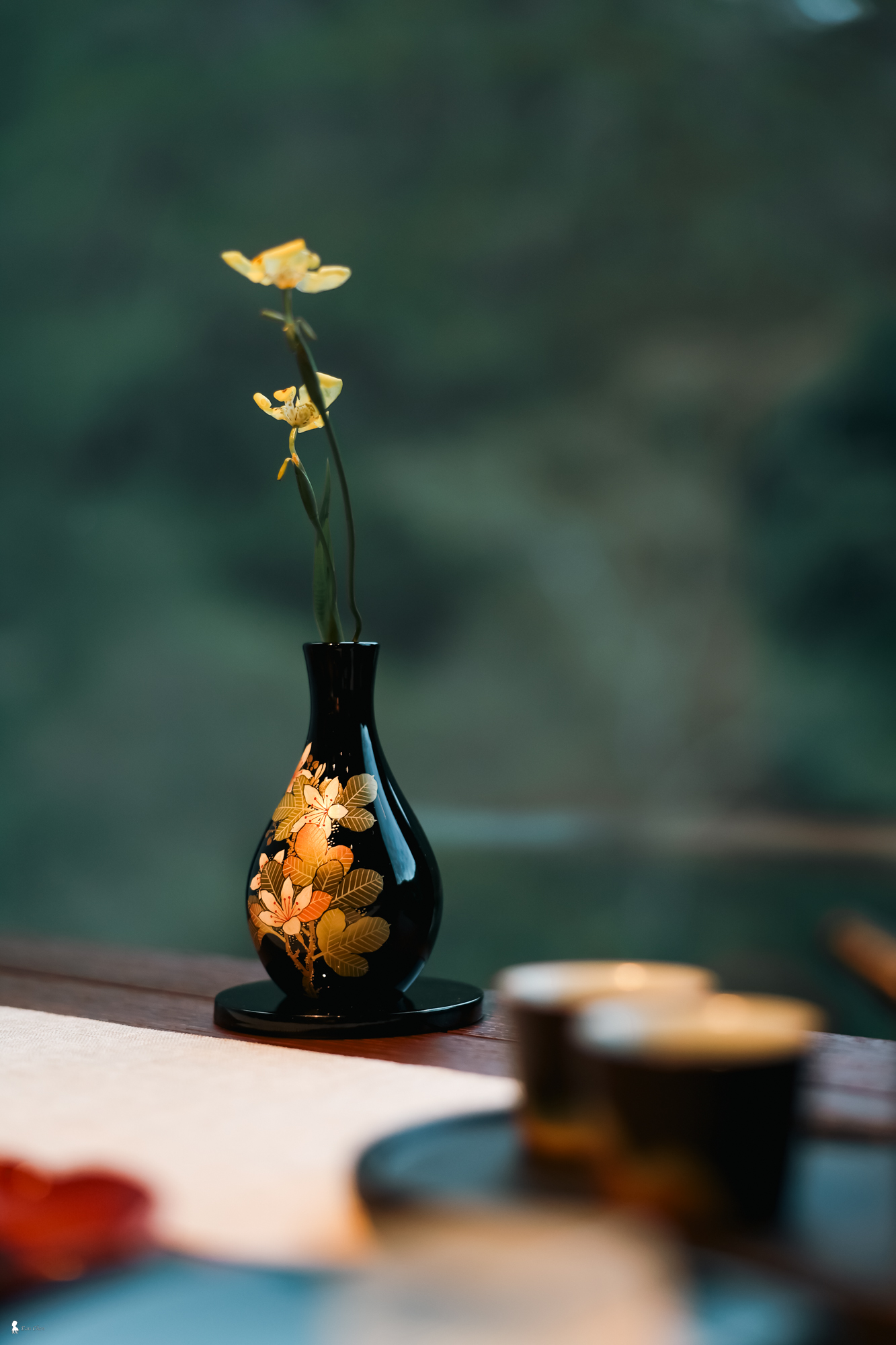 ⇑ 這只漆器花瓶,和午茶漆盤一樣,都出自台灣漆藝師吳樹發之手