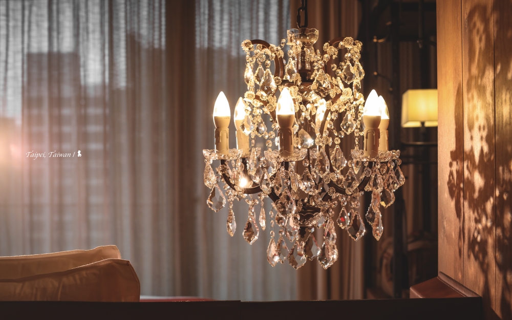 ⇑ 房間床邊刻意低垂的水晶吊燈,不只方便閱讀,也讓房客能近距離的感受這份奢華之美
