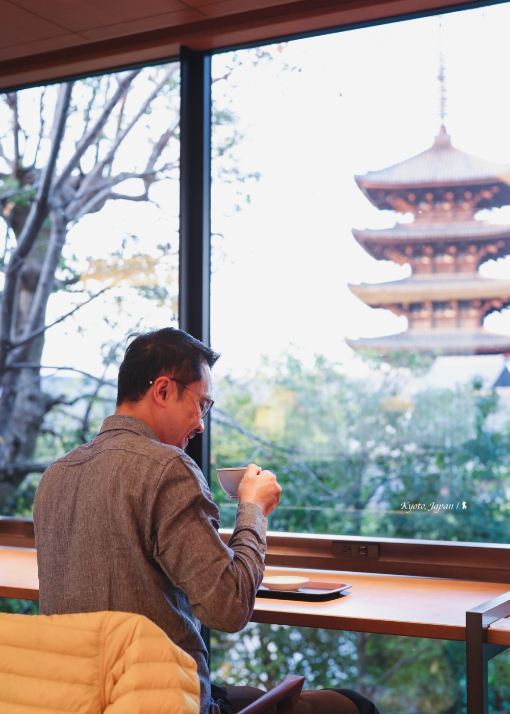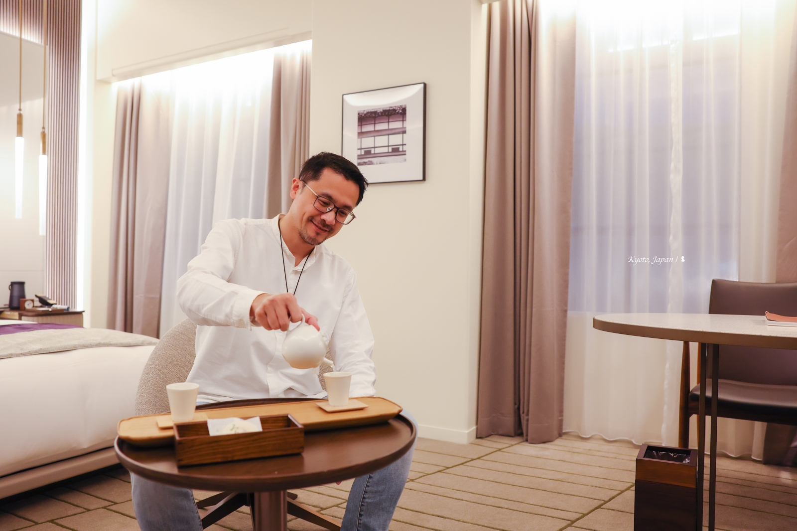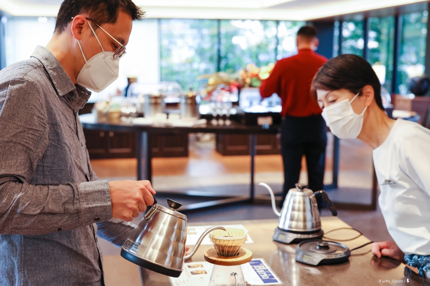 這間飯店有個我很愛的空間,是全館客人都能在 7:30-22:00 自由免費使用的貴賓休息室,白天會提供各類小食與甜點,到了晚上則是換上冷盤與輕食的雞尾酒時段,房客能舒服在此一邊品飲一邊欣賞日夜不同風情的八坂塔,很有誠意。不光這樣,這裡還提供了抹茶與手沖咖啡的體驗,我接連兩次來都遇到了英文很好的服務人員 Yuko 女士,很親切的她會帶領客人打抹茶與沖咖啡,從她身上,我見識到了頂級飯店的優雅服務質感,不僅互動舒服、同時也讓人感覺很受歡迎,那是很溫暖的專業服務。