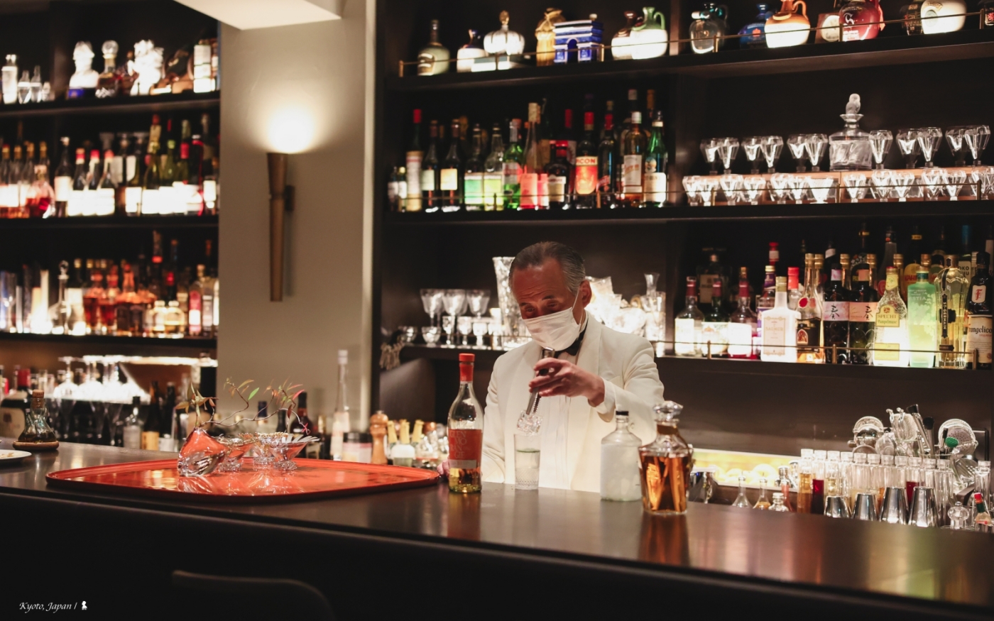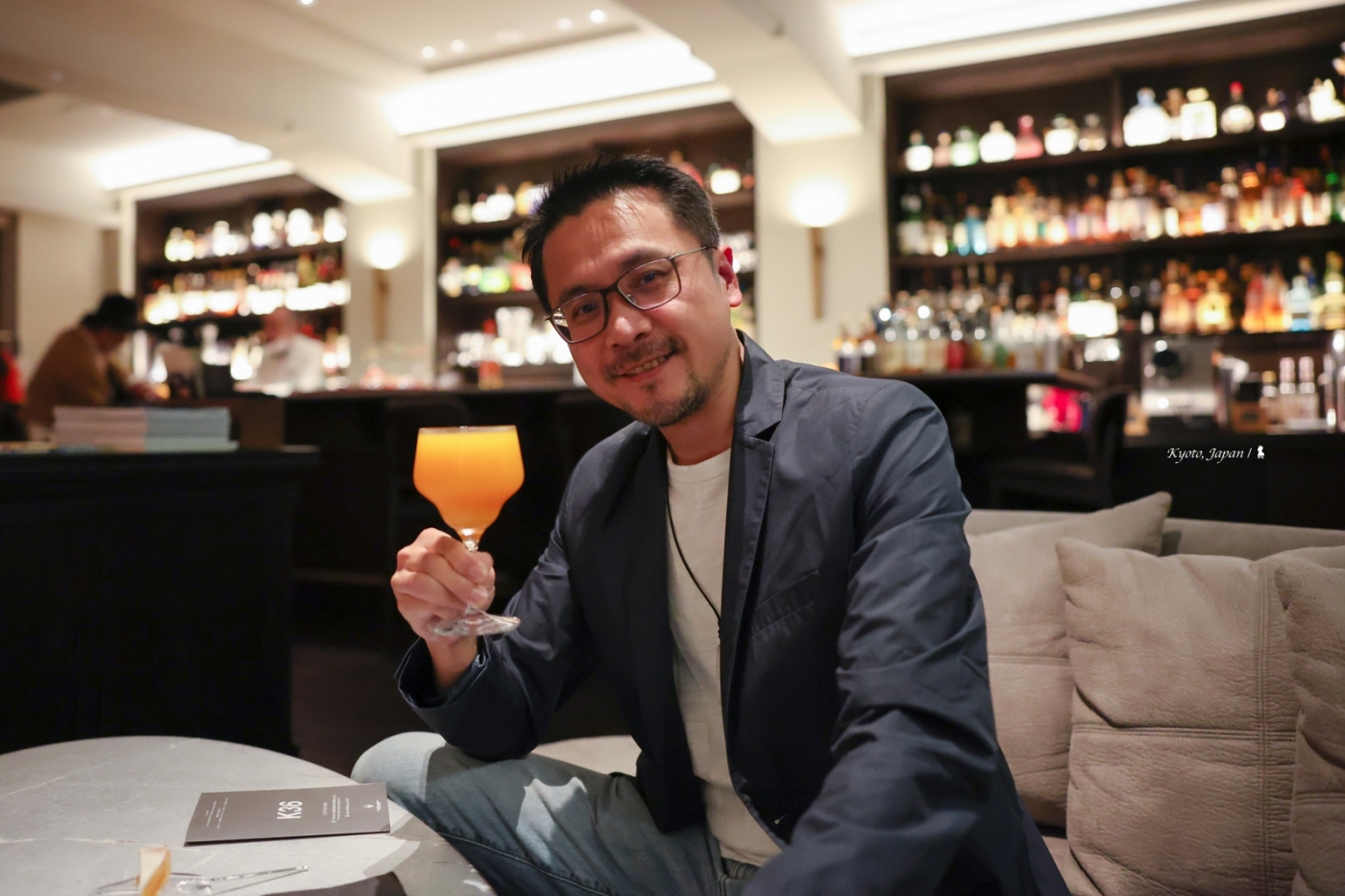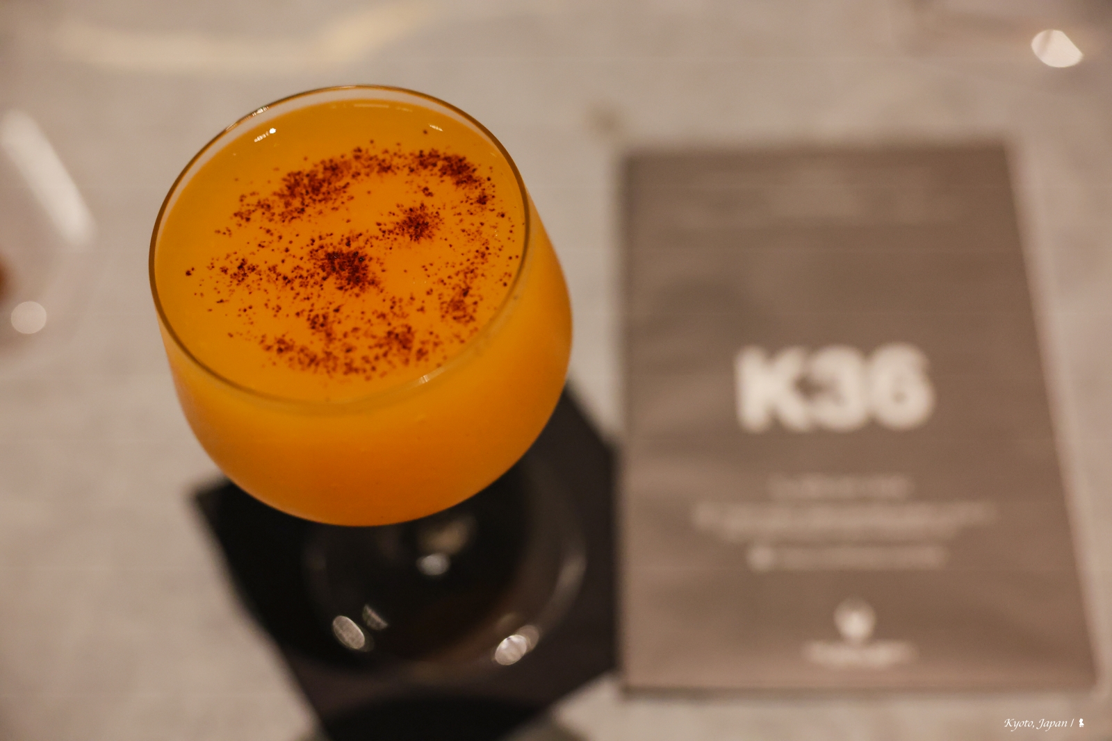 除了 Yuko 女士,還有一位男士也讓我印象深刻,那是京都傳奇調酒師 – 西田 稔先生。飯店頂樓有個城市裡很受歡迎、能近觀八坂塔的「K36 The Bar & Rooftop」,同時有戶外露天 Bar 也有室內酒吧,我連著兩晚報到。第一晚坐完戶外,第二晚在室內酒吧,我幸運遇見了參與這間酒吧企劃也是擔任總監的西田 稔,穿著帥氣白西裝的他非常親切有禮,我詢問他 menu 上的無酒精調酒(Mocktail)有什麼,他說幫我用 かき 來做如何?我停頓了 0.5 秒,突然會意、那是我喜歡的柿子,我樂歪了!第一次喝到用柿子做的調飲,最後上頭還灑上一些咖啡粉,確實蠻搭。若喜小酌,下回造訪京都,不訪來這間酒吧試試這位很有名的調酒師的作品,肯定不會失望!