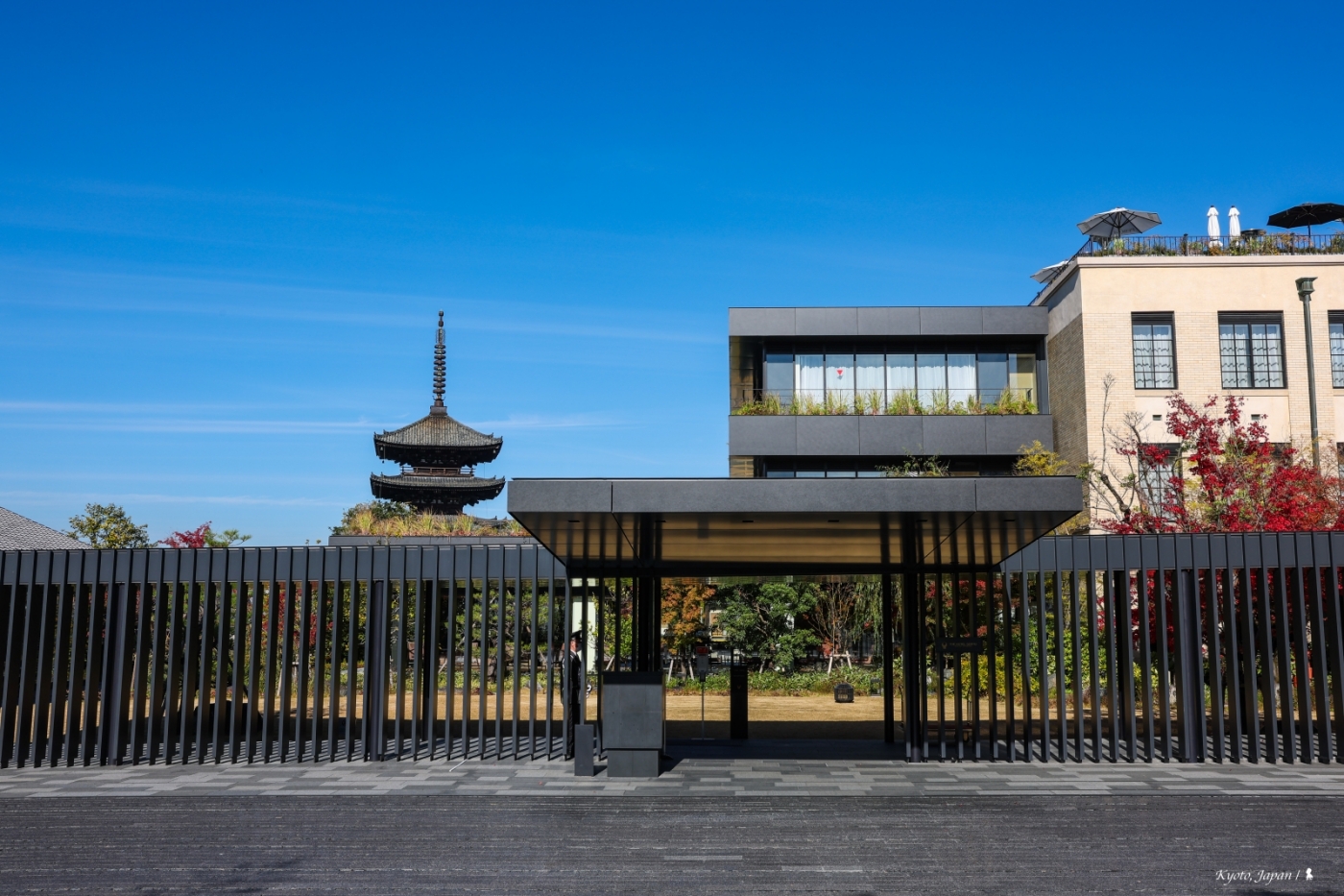 飯店,就座落在古蹟群聚的東山區,散步到八坂塔只要 4 分鐘,前往遊客總是如織的清水寺或高台寺也僅約 6 分鐘,除了能少走些路,最大優勢是能早人所不能早,還有獨享人潮褪去後的清幽。但別以為身在一級觀光戰區就會擁擠吵雜,正好相反,在人來人往的清水坂一帶,他們在飯店與鬧街之間用了一個廣場當結界,一方面擄獲路過行人的欣羨,同時更讓住客能坐擁小隱於市的靜謐,這是何其珍貴與奢侈!