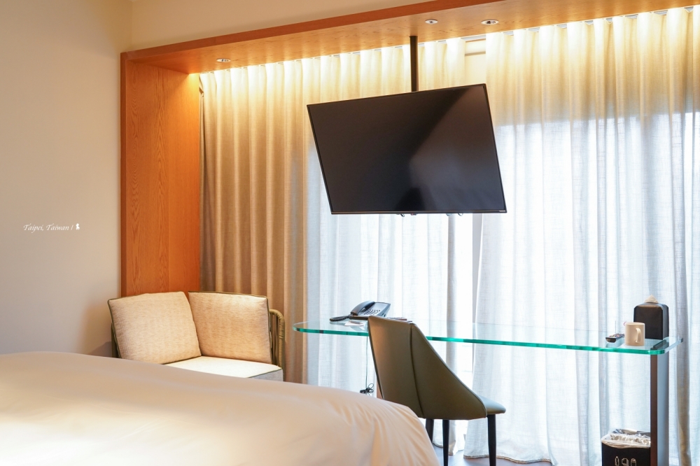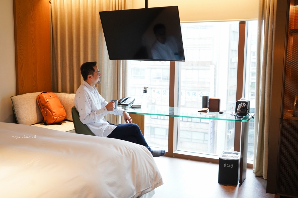 有型有款的房間設計稱得上是小而美,施工品質包括細節也都紮實,我覺得以客房質感來說與在我心目中擁有高評價的「大安金普頓」及「台北時代寓所」可屬同級。我住的客房整體都沒問題,只有一個設計上的缺失,因坪數較小所以電視採懸吊式節省空間,但位置剛好就被放在書桌座位的正上方,若真要坐在書桌辦公,確實會讓人感到壓迫與些許不適,算是比較可惜之處。