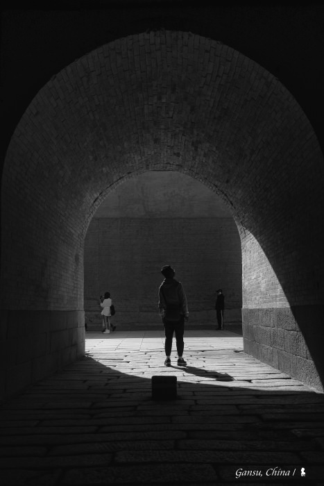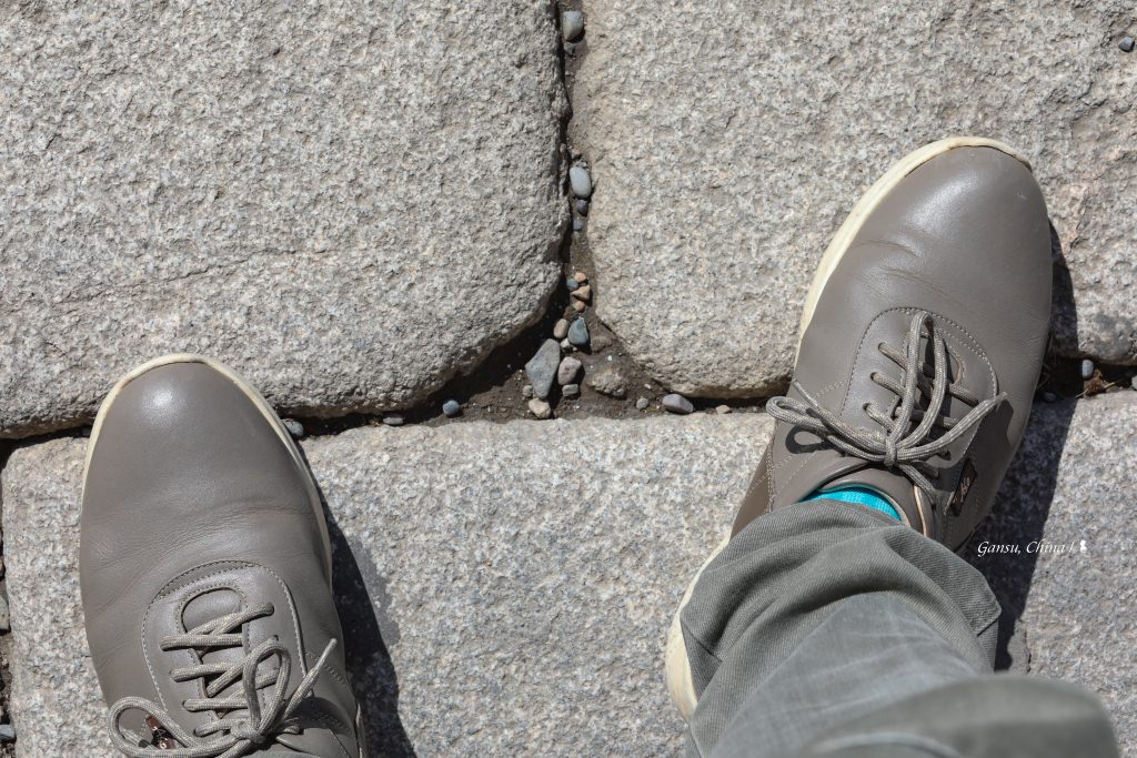 即使是今日看來,由內城、外城、甕城與城壕組成的嘉峪關仍相當宏偉。走進城門,地上凹凸的石板是宋朝所留下,若每隔50年用同樣視角拍攝一張照片,腳上鞋子的演進史,應該蠻精彩。要登上嘉峪關,有條陡峭沒樓梯的通道,將軍不下馬、那是從前讓馬通行,之前造訪的西班牙塞維亞主教座堂也有類似設計,不過主要是設計給尊貴的國王騎馬使用。現在所有人要上嘉峪關一律走馬道旁的階梯,拾階而上,從那可遠眺山稜積雪的祁連山,此外更能感受古詩裡荒涼壯闊的戈壁風情。陽光很曬天很藍,如同機場,幾百年來,這悲歡交織的關隘,上演的劇碼教人感嘆。
