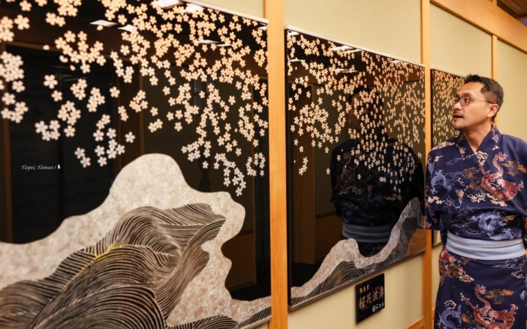 以日式款待服務聞名的北投日勝生加賀屋,除了泡好湯、嚐雅食,這棟以日本數寄屋為設計靈感所打造很有「神隱少女」場景感的飯店,其實很像一座日本石川縣的海外美術館,無所不在的藝術品都很值得細細品味,不管是輪島塗的沈金蒔繪,或者是九谷燒的極光耀彩,不僅帶來貴氣,也藉由藝術品去強化與日本加賀屋的北陸文化臍帶,增加連結性。接待大廳的電梯門一開,映入眼簾是燒製成牆的四季之花相迎,接著辦理入住不妨先往後退個幾步,會巧見一隻鳳凰振金翩飛,這兩件分別來自日本石川縣的大師作品,材質技法不同,但都是透過最繁複的工序來洗鍊呈現初心,這彷彿也在呼應著加賀屋最重視的日本款待精神(おもてなし)。