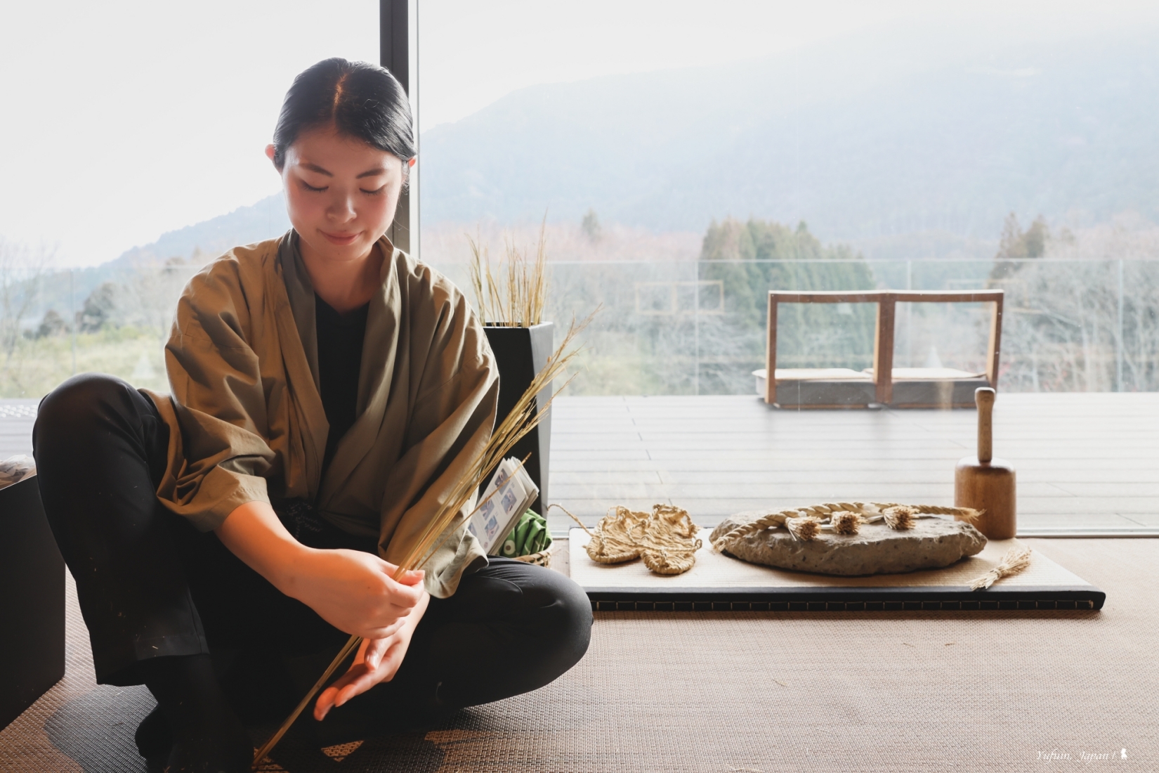 ⇑ 界 由布院的當地樂,帶領房客製作稻草平安符