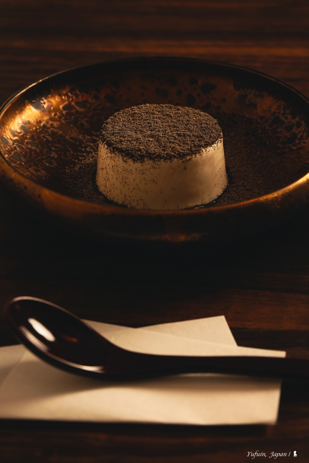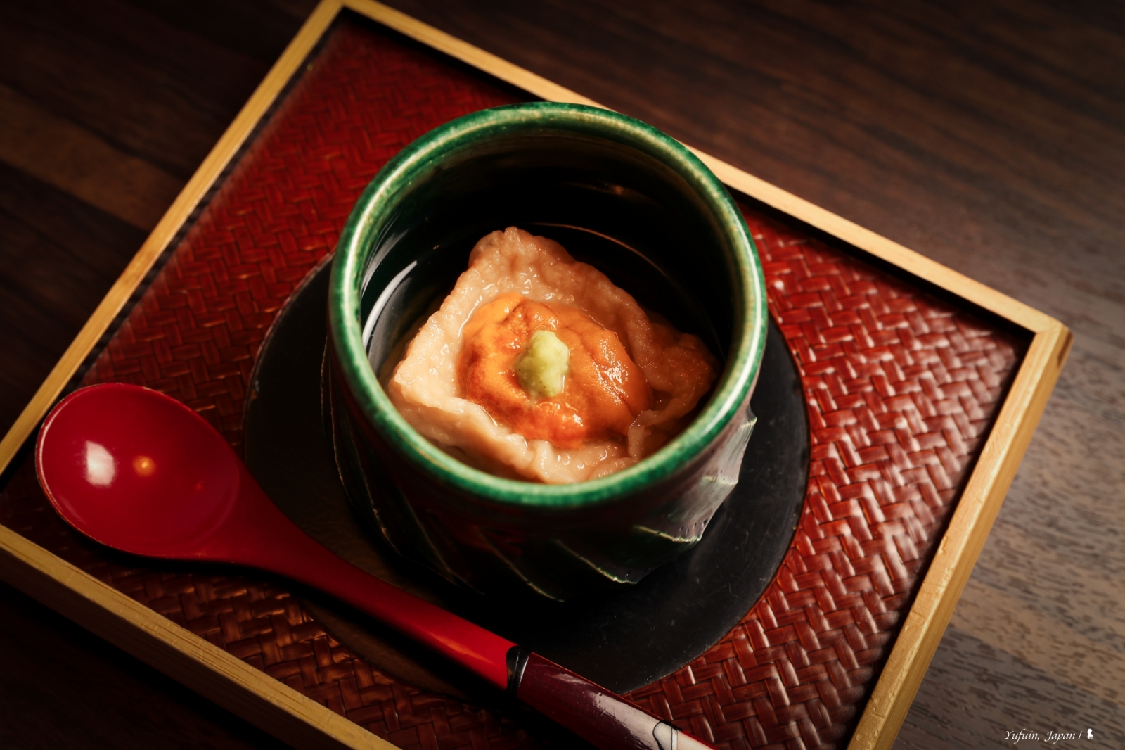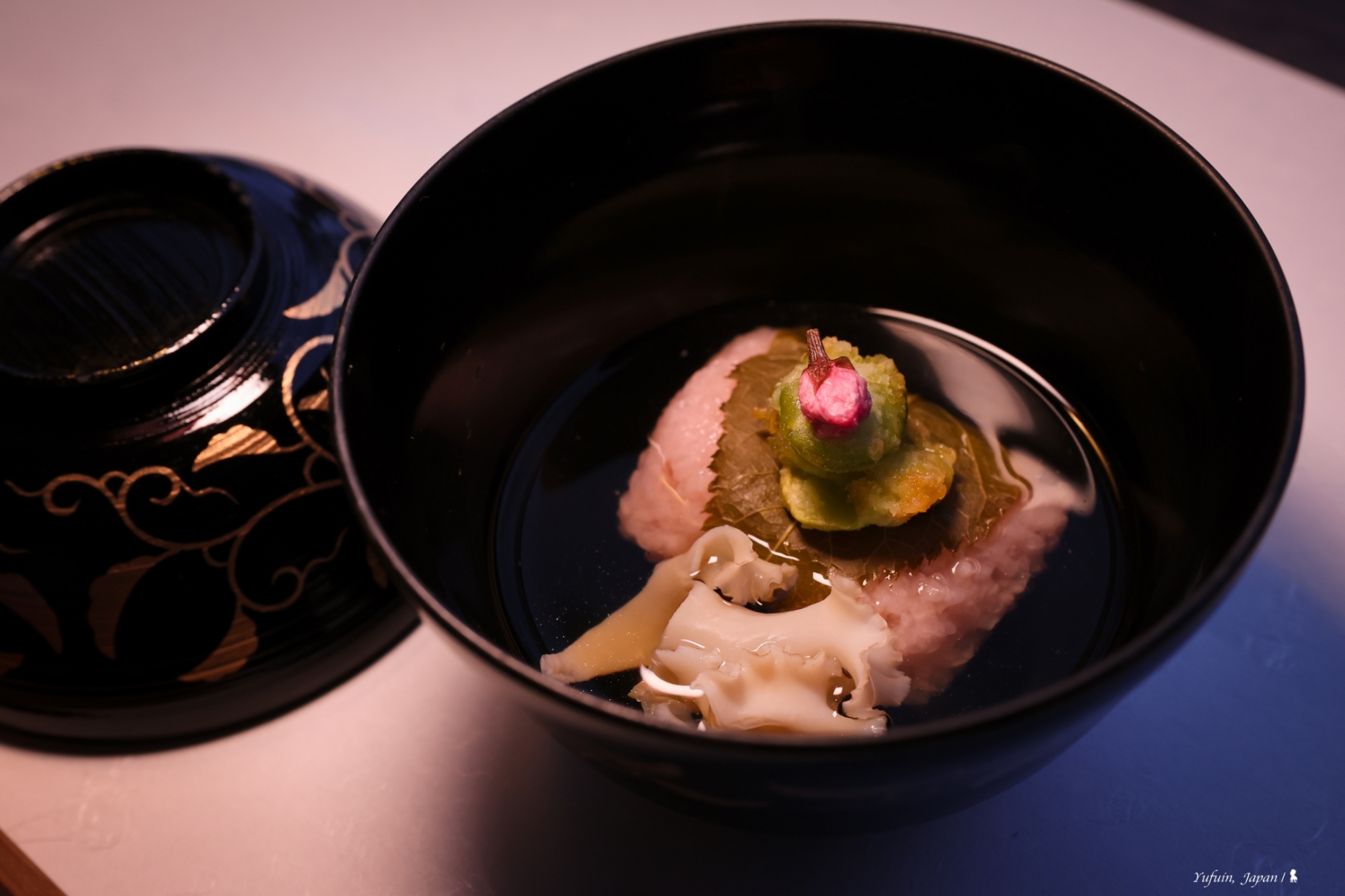 晚餐分為 17:30 與 19:30 兩個梯次,首晚選擇了 17:30 的場次,剛好能靜靜欣賞日落後的薄暮時分,梯田間的燈火漸次點亮,氛圍寧靜又詩意。坐在窗邊,一邊品味美食,一邊感受由布院的夜色變化,這一餐,從視覺到味覺都是享受,吃到一半,我還忍不住中途跑出去拍藍調時間下的梯田光影。不得不要大力稱讚「界 由布院」的料理,精緻又美味,每道菜都能感受到料理人的用心,更讓我嚐到前所未有的 「野味」!