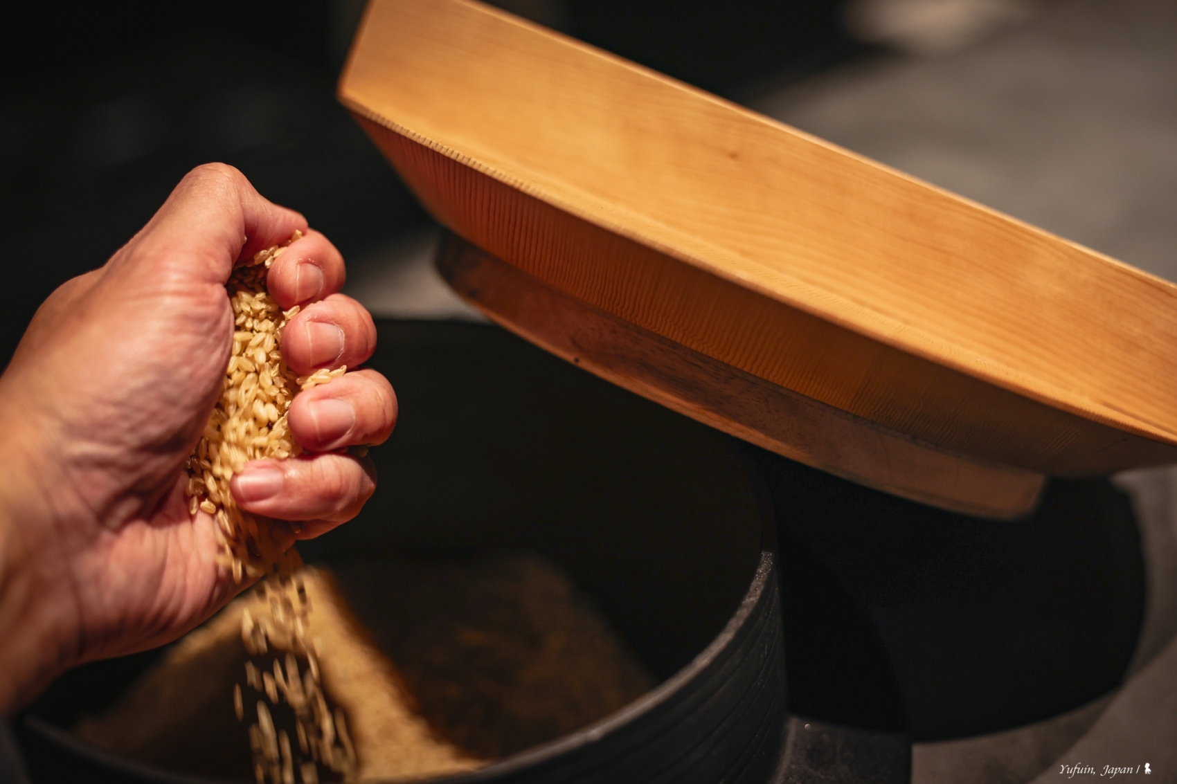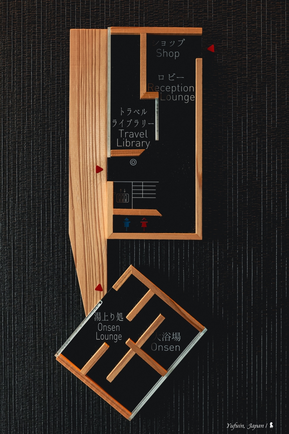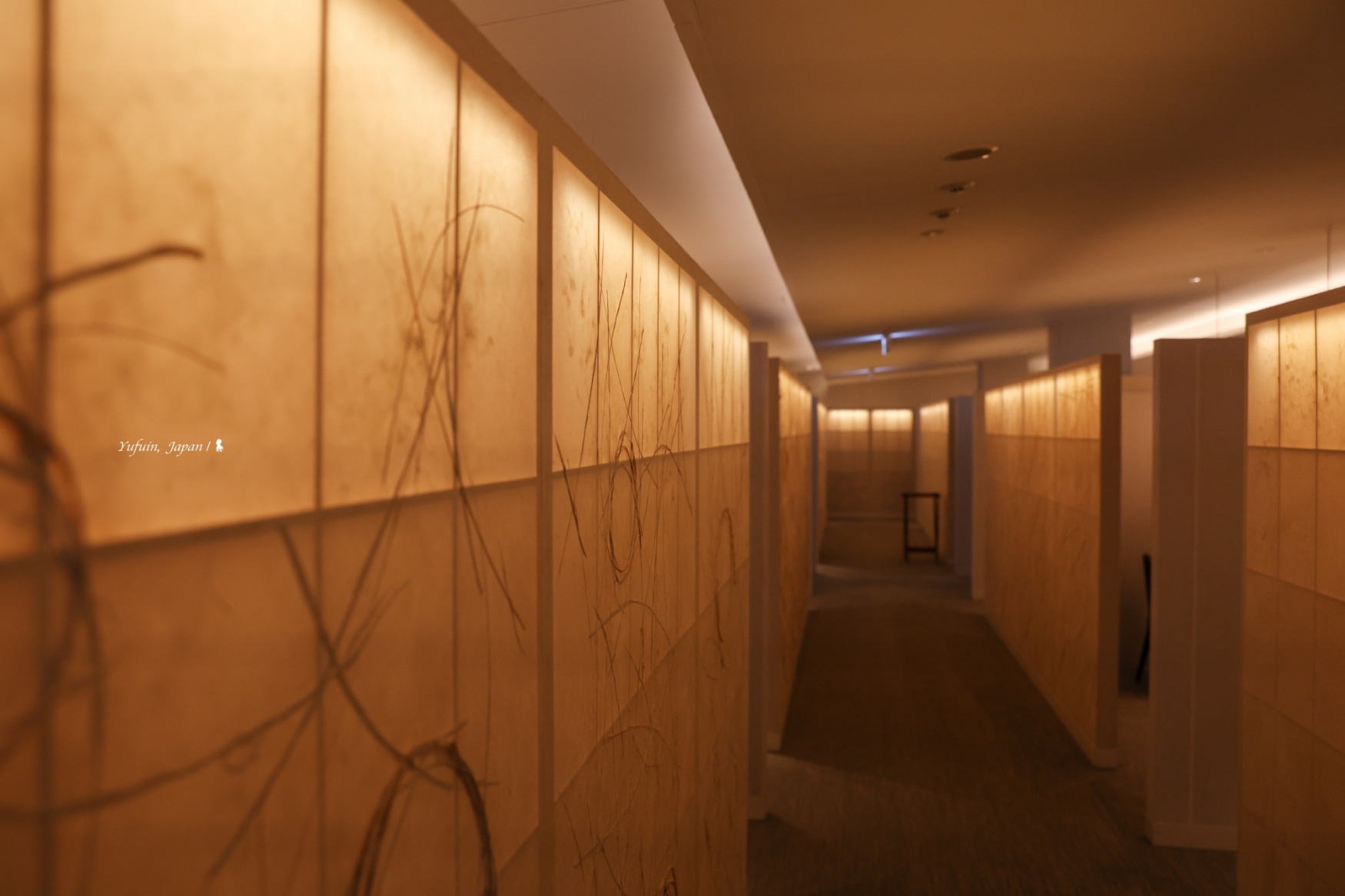 若對建築與空間設計有興趣,來到這肯定會和我一樣驚喜不已!由隈研吾親自操刀,將在地文化融入細節,每一處都充滿巧思。就拿大廳來說,入住櫃檯的靈感來自大分縣傳統農家廚房,一座黑灰灰的圓弧長櫃檯,象徵著農家的 「灶」,而櫃檯上擺著兩口鐵鍋,打開一看,裡頭竟然真的盛著一大把米粒!而這些米,還是來自界 由布院自家梯田栽種,不只充滿巧思,更帶有濃濃的地方情感。假如有機會造訪,經過大廳記得停下腳步,好好欣賞這個別具匠心的設計。不僅空間與燈光設計都極具質感,更將在地傳統文化完美轉譯為設計語言,確實高招!