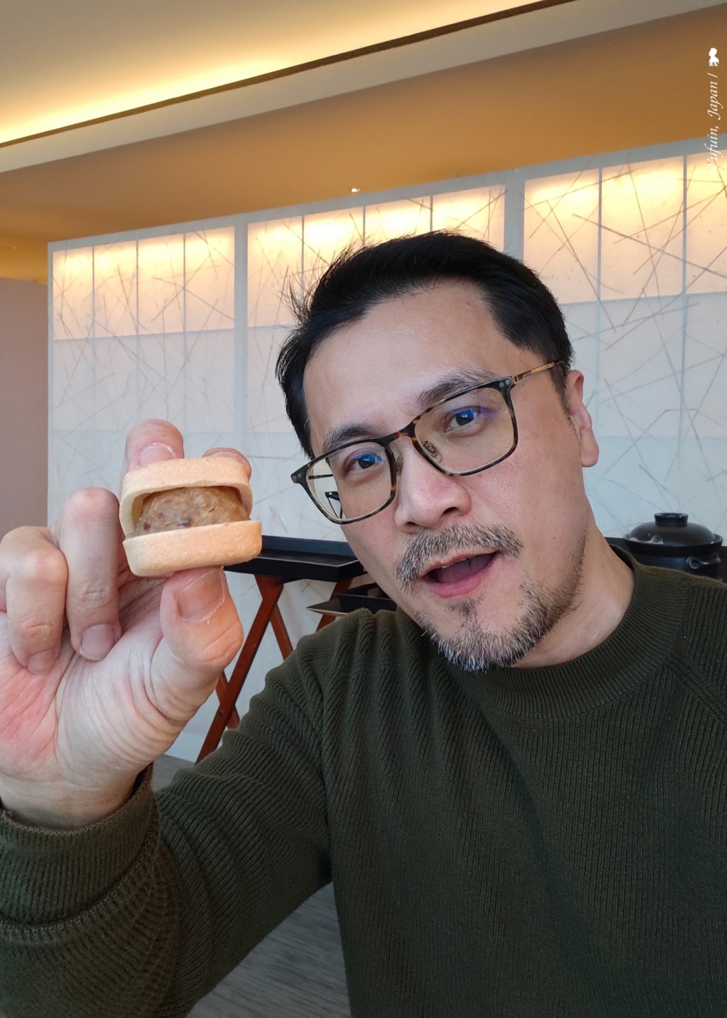 ⇑ 「山豬肉香菇最中餅」一口咬下風味十足,外酥內餡鮮,鹹香有層次,真是有滋有味的開胃小點