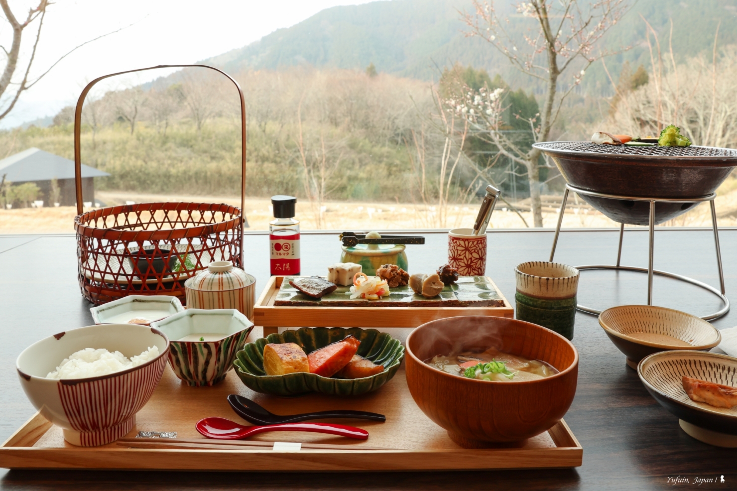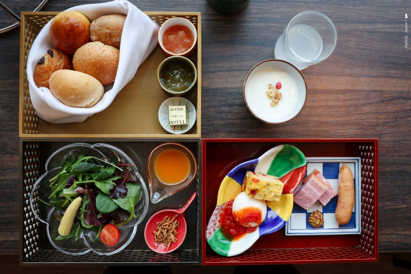 操後的早餐同樣精緻,值得一提是界 由布院的早餐,不管是日式或西式都非常好,日式早餐優算是正常發揮,但西式朝食可真出乎我意料!細節滿滿的用心,連擺著小火爐讓旅人自己烤香腸與火腿都帶著儀式感 ,我特別喜歡這餐有靈魂的醬汁搭配— 麵包除了奶油,還有蘋果醬與柚子醬,沙拉則搭配清甜的胡蘿蔔醬。