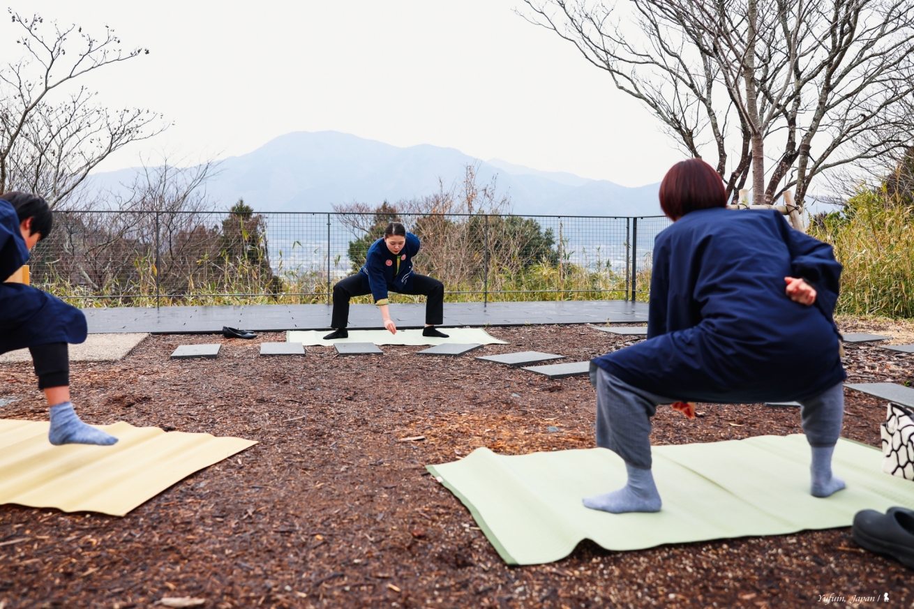 來到界 由布院,就是要體驗「日出而作」的悠然生活。每天清晨 7 點,這裡的早操特別融入了傳統農事動作—模擬插秧!站在視野極佳的風景前,一邊伸展、一邊感受大自然的靜謐,為美好的一天揭開序幕。
