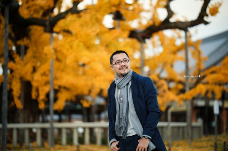 Ean 說攝影:銀杏葉的鮮黃遇上老寺的灰瓦,這顏色不僅具質感又有別於京都的常見秋色。在此拍攝銀杏葉當然要將數百年的歷史建築一起構圖進去,可以將光圈開大讓西本願寺成為有些模糊但可辨的散景,來襯托古木銀杏之美。