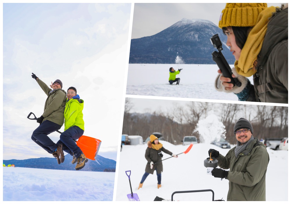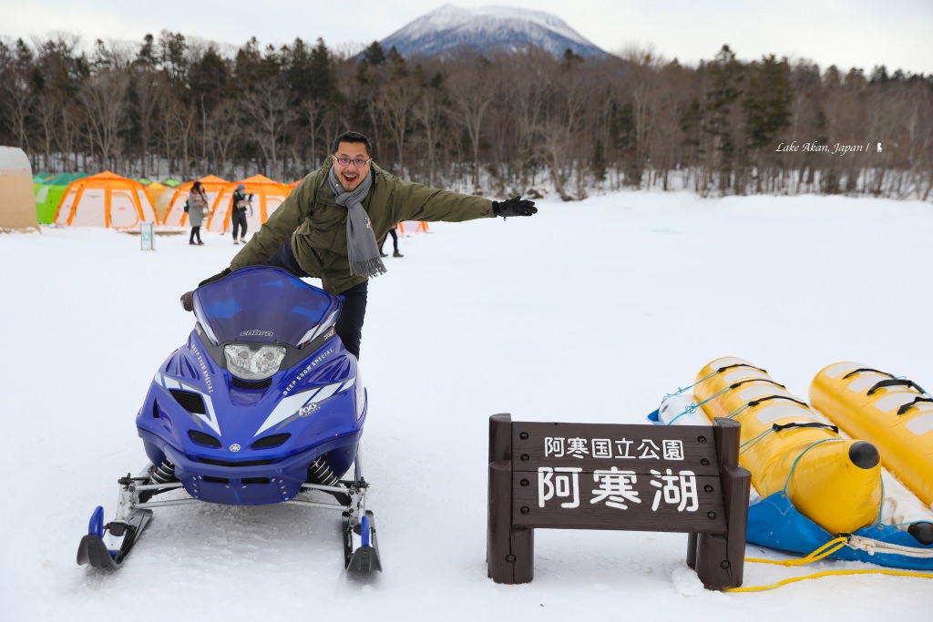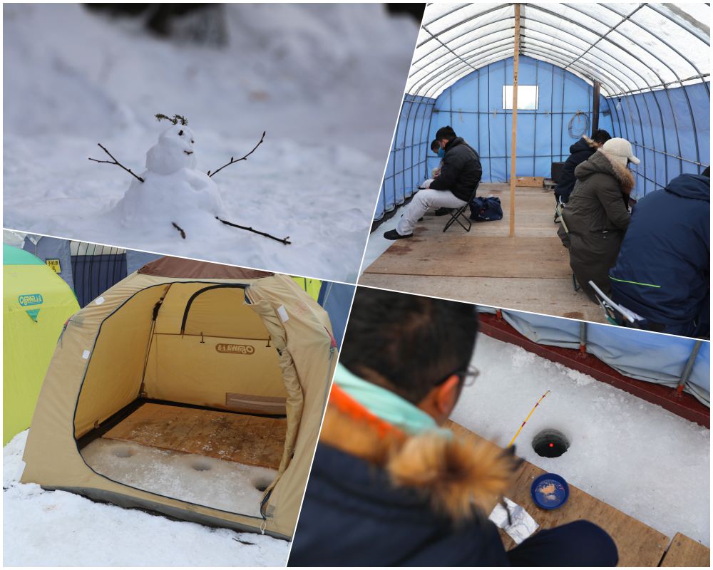 不只景觀不一樣,玩法也大不同!夏天遊船、冬天飆香蕉船!海上玩很尋常,但冰上玩香蕉船那可新鮮了!除能飆速,在雪地摩托車的原地轉圈拖曳下,我們坐著拉緊的香蕉船被 360 度的失速甩尾,引起大夥扯嗓大叫大笑。體驗過被動式的刺激後,還能坐上駕駛座,自己催油門來騎一大圈的雪地摩托車,少了奔馳柏油路上的抓地力,騎來更多了點刺激,天高地闊,雖騎的不是馬,但仍感受一份蒼茫。冬天的阿寒湖像個冰上樂園,不只動態還能養心,視人數會被帶往有大有小的帳篷,帳篷裡有幾個約是易開罐大小的冰洞,原來是讓遊客不必臥冰就有機會釣上阿寒湖的魚,願者上鉤,靠的是等待與機緣。