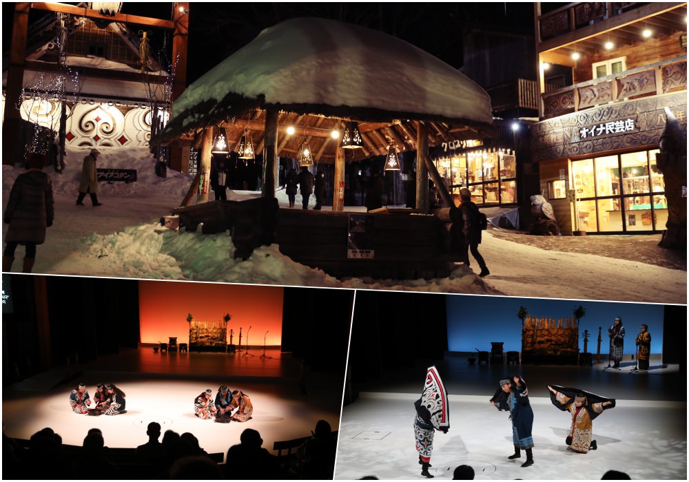 ⇑ 夜晚可到阿寒愛努劇場欣賞原住民傳統舞蹈表演(右下為模仿丹頂鶴之舞)