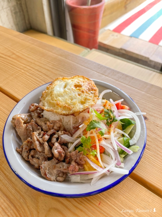 這回我自己在蘭嶼吃到的美味第一名,位於東清,食物好吃,氣氛佳,還有海景。重點是有冷氣,為何要特別強調,因為島上不少餐廳是沒冷氣,當中午正曬、走進有冷氣的所在,只有兩個字:天堂。這間位於 2F 的「東清以斯拉雜貨店」,方方面面都很到位,包括人員服務,我推薦烤肉飯加荷包蛋。