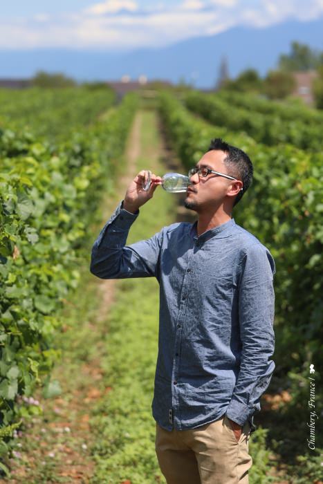 ⇑ 在尚貝里酒莊葡萄園穿上買的 Sisley 襯衫
