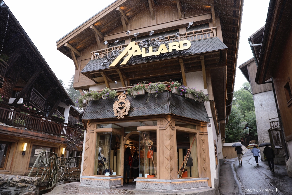 與響亮的名聲相比,這座歷史超過千年的山城遠比想像中小,但從廣場名牌店櫛比鱗次看來,這的度假消費力肯定高。廣場中央有間 HERMES,這不稀奇,更吸引人的是隔壁一間發明踩腳滑雪褲的服飾品牌:AAllard,創立於 1926 年,不僅擁有純正的梅傑夫血統,更讓人吃驚的是,想逛 AAllard 的實體店,就只能到這!一家賣服飾,另一家則是賣配件如皮包、鞋子等,兩間離得很近。店裡展售不少高價款衣服,都像版畫有編號,例如 2/9,代表的是這件衣服全球只會生產 9 件,看到的是第 2 件。如此珍稀,難怪會獲得不喜歡撞衫的富豪們歡迎。