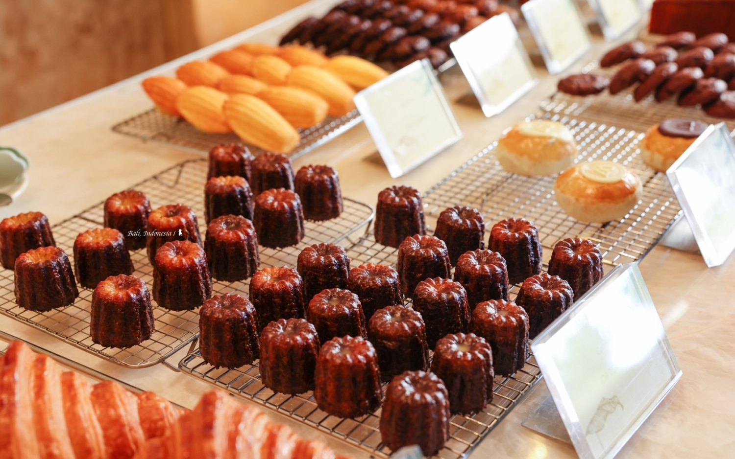 CANNELÉ 是一間讓人賞心悅目的甜點店,從空間線條到甜點造型都是那樣優雅。但這絕對不只是一間法式甜點店那麼簡單而已,當然可麗露、馬卡龍還有各種融合印尼食材的法國糕點,保證會誘發你的選擇困難症,除此之外多款麵包與鹹點也都相當美味,像是使用瑪茲瑞拉起司、櫻桃番茄及羅勒的蜜糖吐司,以及名為「Panzerotti Margherita」裡頭有番茄、羅勒餡料的義大利炸起司麵包,都是可當作午餐享用的必點鹹食,此外我喜愛的可頌也在水準之上。