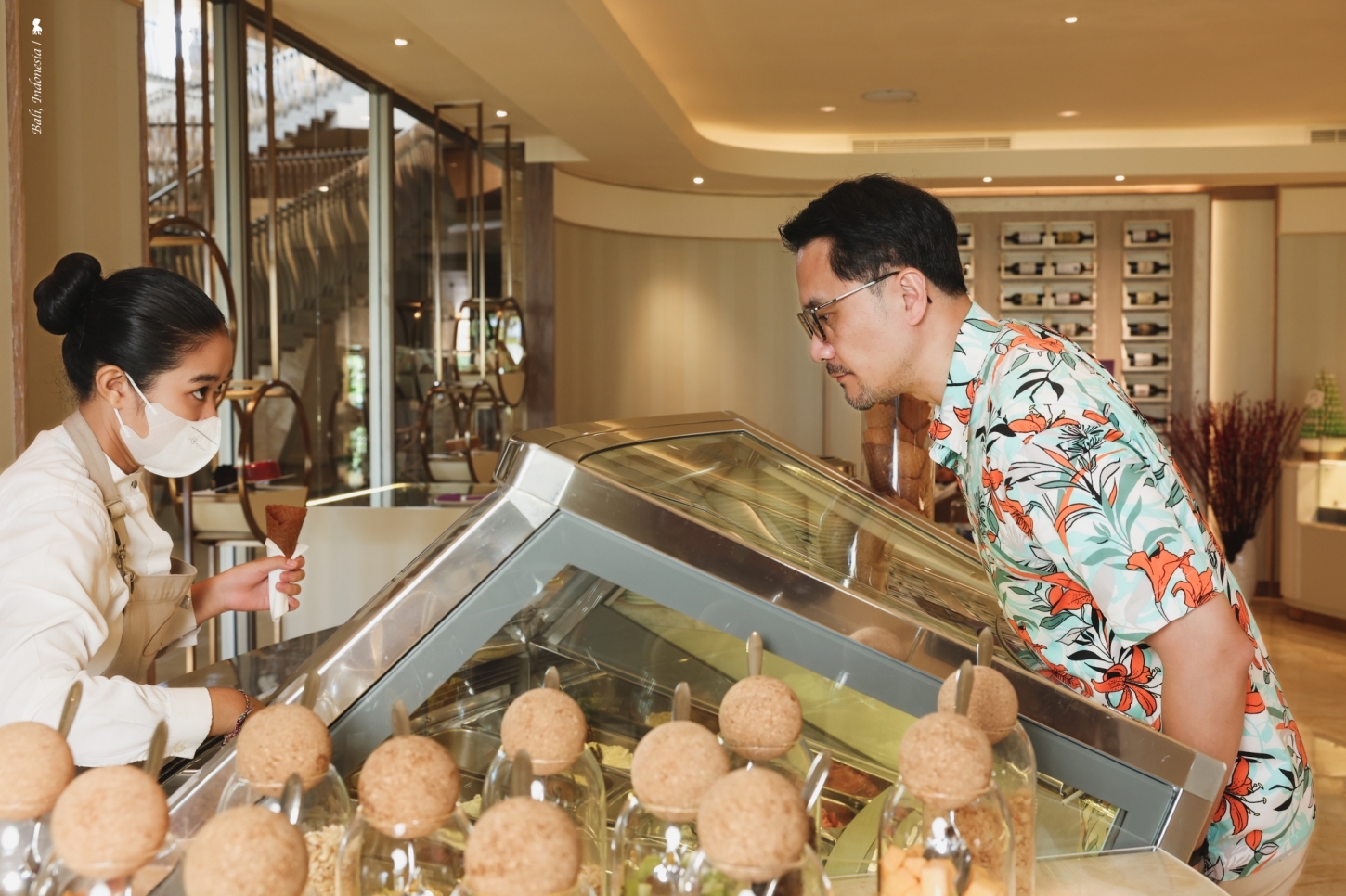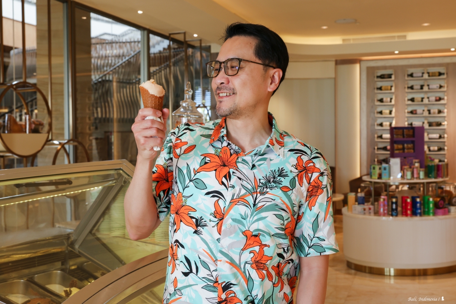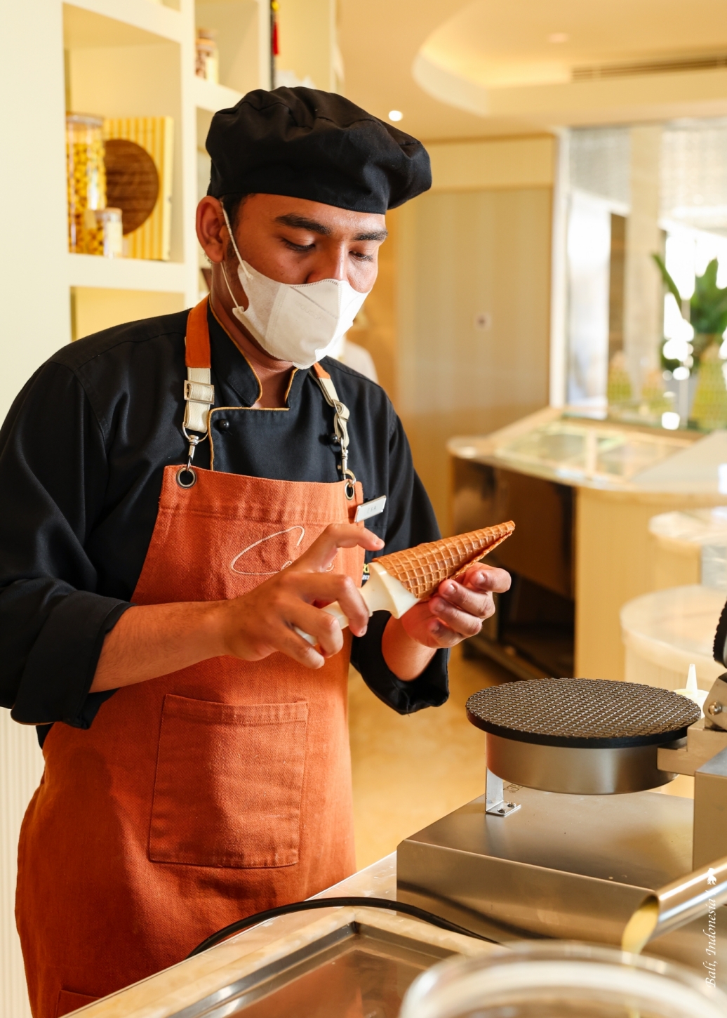 吃甜點當然要配咖啡,這裡提供的咖啡也沒馬虎,我點了來自爪哇的阿拉比卡品種以及峇里島當地種植的咖啡,旅行世界能喝到在地風味的咖啡總能讓我感到歡喜!最後我選擇用義大利冰淇淋來當這餐的結尾,冰淇淋自製不稀奇,但冰淇淋甜筒的餅皮都是現場製作,這我還是頭次遇到,沒想到甜筒也能這樣好吃,長經驗了。若有機會來穆麗雅,這家法式甜點店推薦一定要來試試。