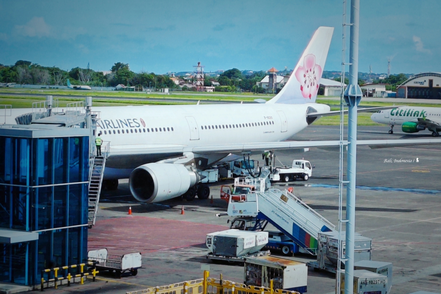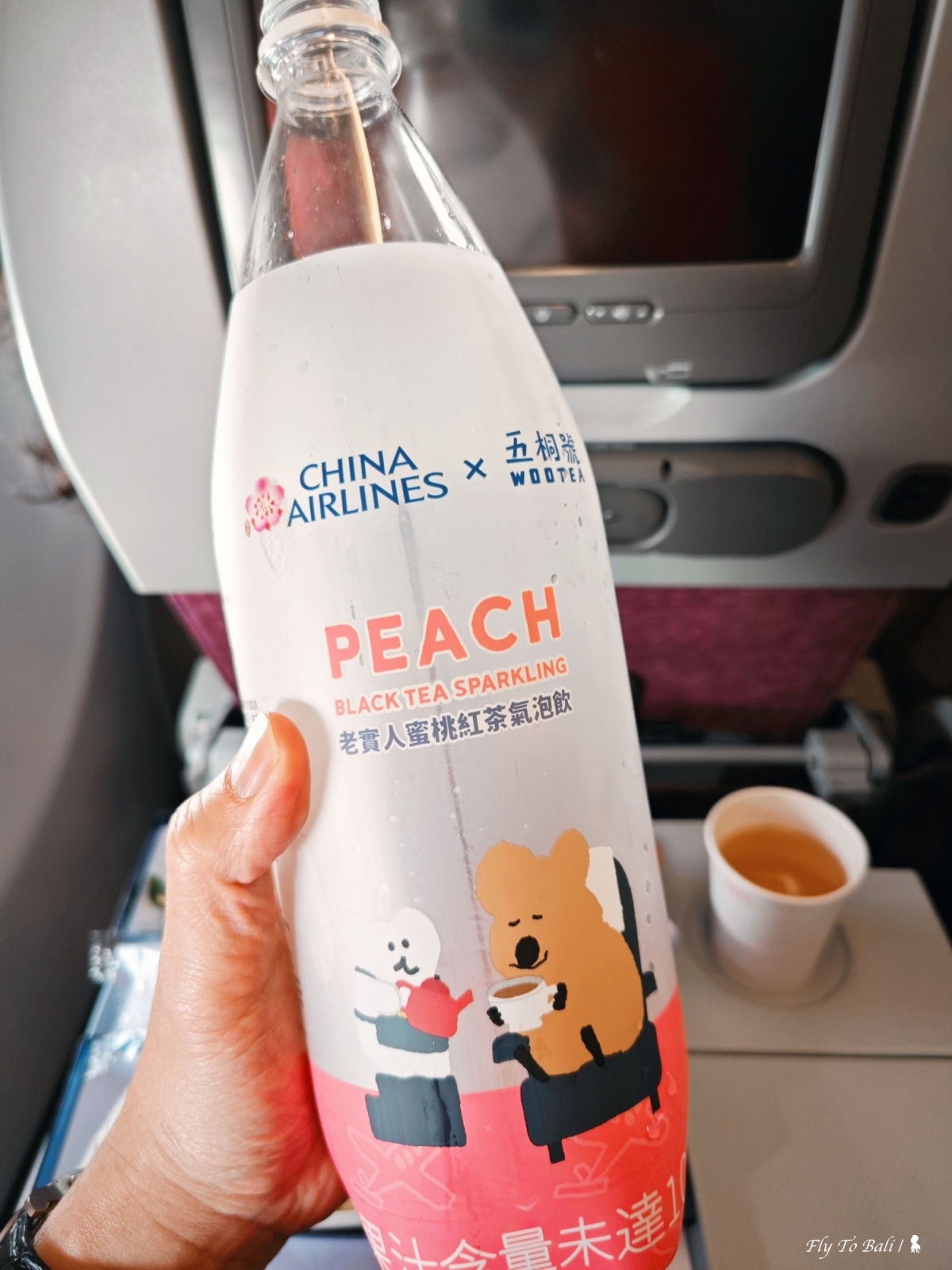 距離上次造訪峇厘島已是 22 年前,久到我都忘記要搭 5 個半小時的飛機才會到,好在這回搭乘的華航航班時間蠻理想,09:15 am 起飛、2:45 pm 降落,因比較早起床,起飛後剛好補個眠,醒來後吃個午餐就準備降落了!印象中有一陣子沒搭華航了,除了餐點一樣合我的亞洲胃口味,也發現華航有些不一樣了!他們跟五桐號聯名,推出一款「老實人蜜桃紅茶氣泡飲」,空姐語點得意的跟我說這是別處喝不到,腦波弱的我馬上來一杯,蠻好喝;餐後,頗意外還有冰淇淋,是五桐號的綠茶凍烏龍冰淇淋。此外,翻閱機上雜誌時,華航周邊商品也讓我眼睛一亮,兩款飛行夾克蠻有型好看、價格也合理。