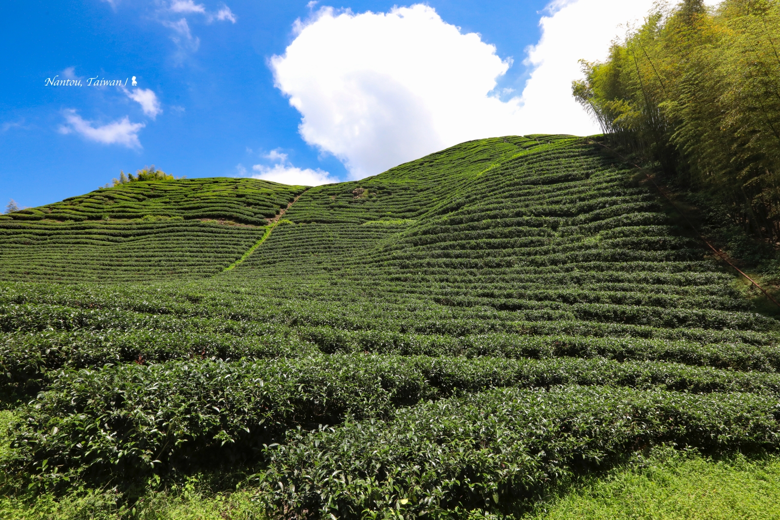 離開竹林,再開車十來分鐘爬升到海拔 1600-1800 公尺間,我來到八卦茶園。這裡是熱門的電視廣告拍攝場景,比較為人所知的是多年前一支徐若瑄的御茶園廣告,近的話幾年前林心如的桂格奶粉廣告就是在這跟一群採茶阿嬤共同拍攝。這一帶的茶園美在種植茶樹的坡度,高低有致,有種茶園版的微軟桌面感,是相當舒心台灣風情。