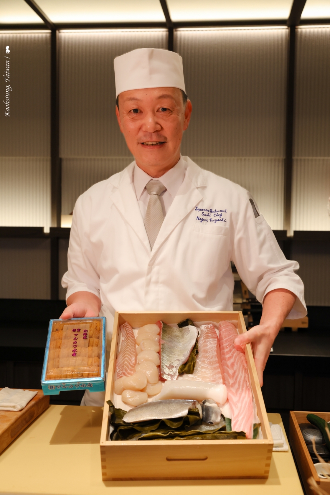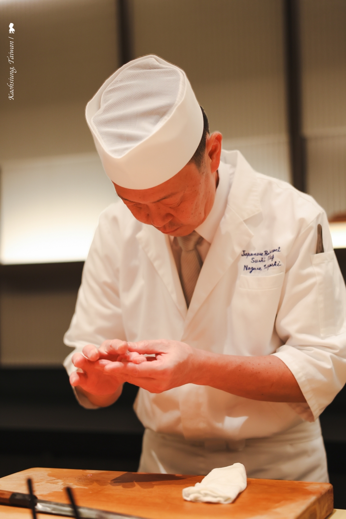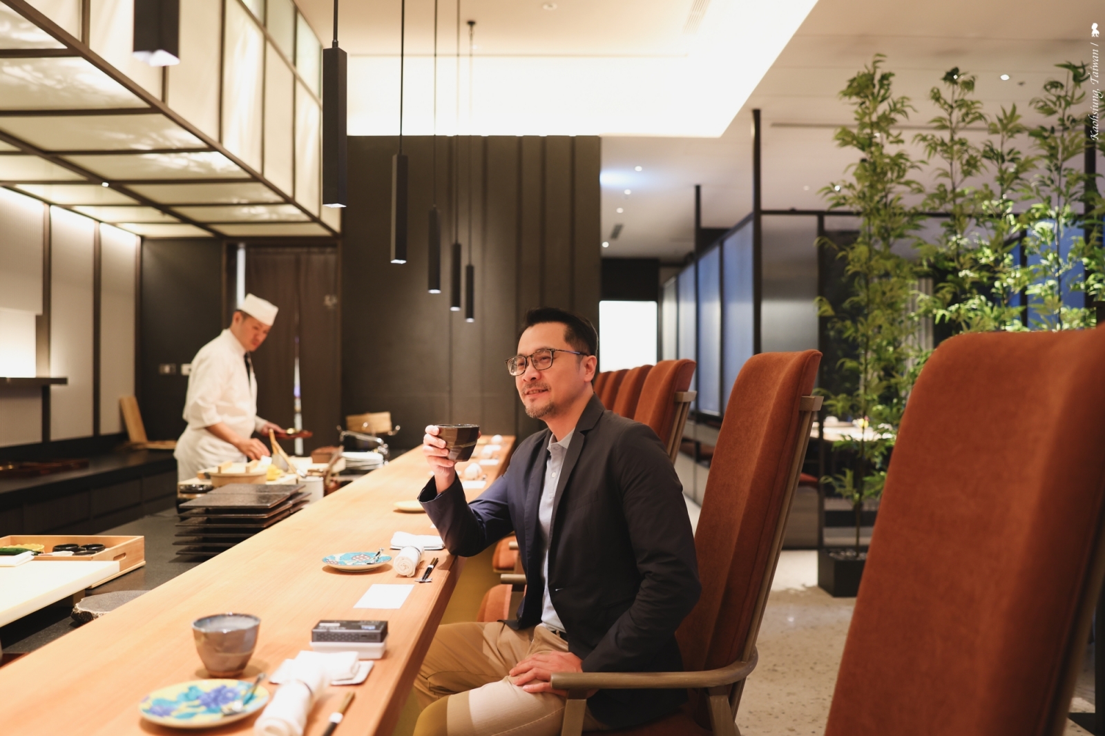若要推薦真正的「職人餐桌」,那一定是飯店二樓的「飛翔」日本料理。這裡分為三區:和食、鐵板燒與「鮨」區。我選擇坐在僅 12 席的板前,由來自大阪、擁有 30 年資歷的料理長長瀨剛主理。