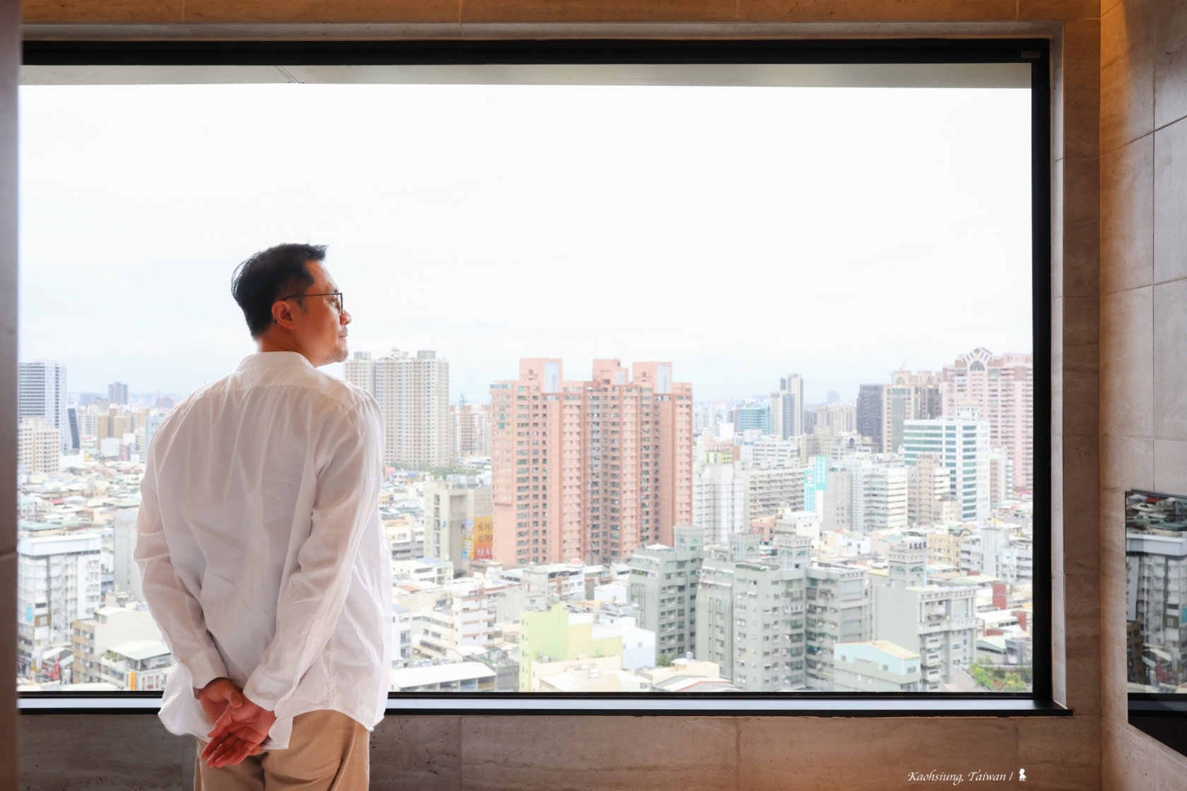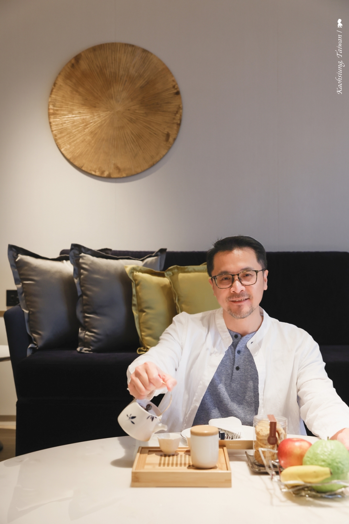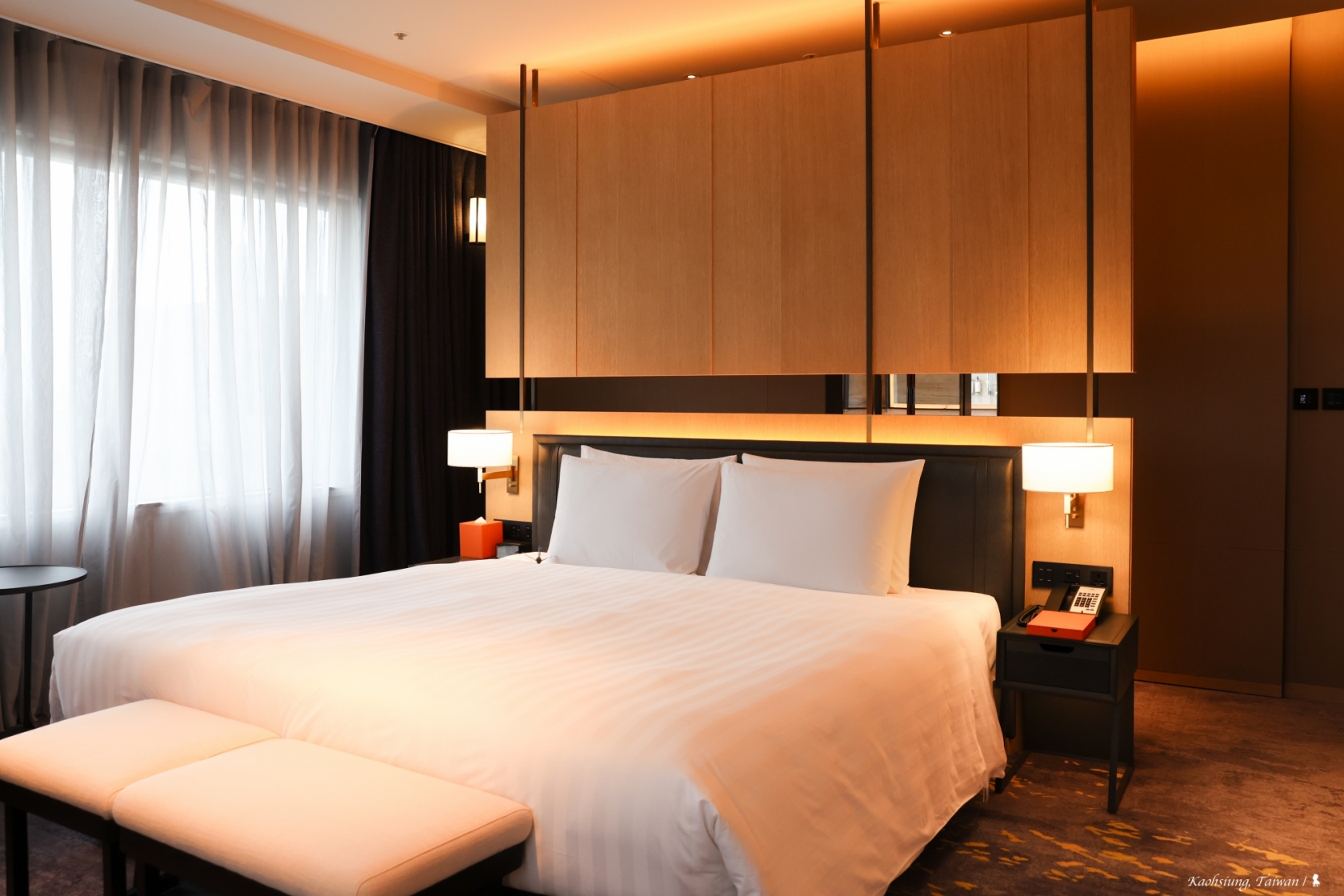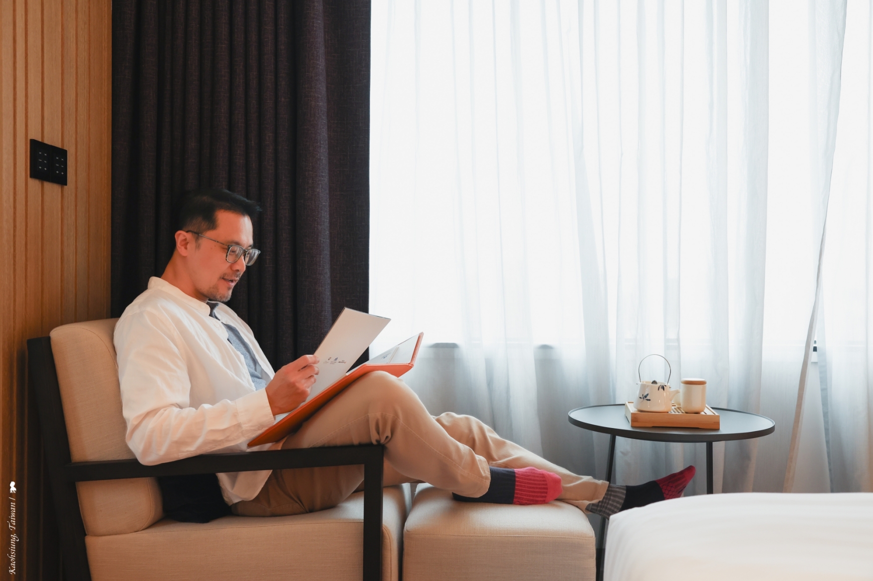 我入住的是260間客房中最具代表性的「琥珀套房」,以高雄海港與工業美學為靈感,房間寬敞且分為客廳、臥室與浴室三個明確區塊。設計團隊巧妙運用沉穩木質調、和風格柵與地方藝術品,營造出低調奢華卻不失溫度的空間。
