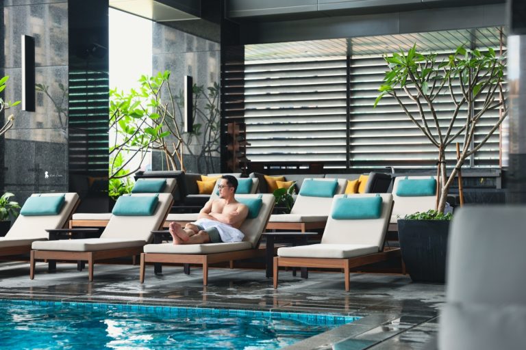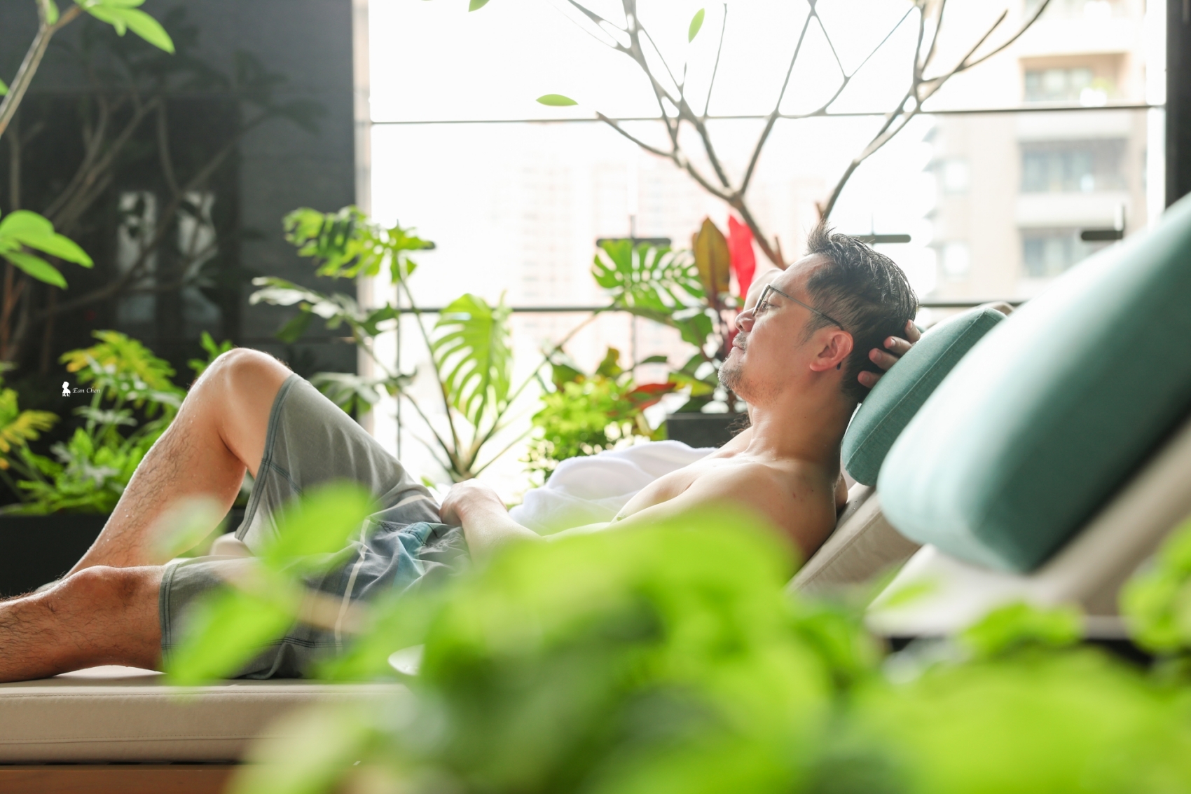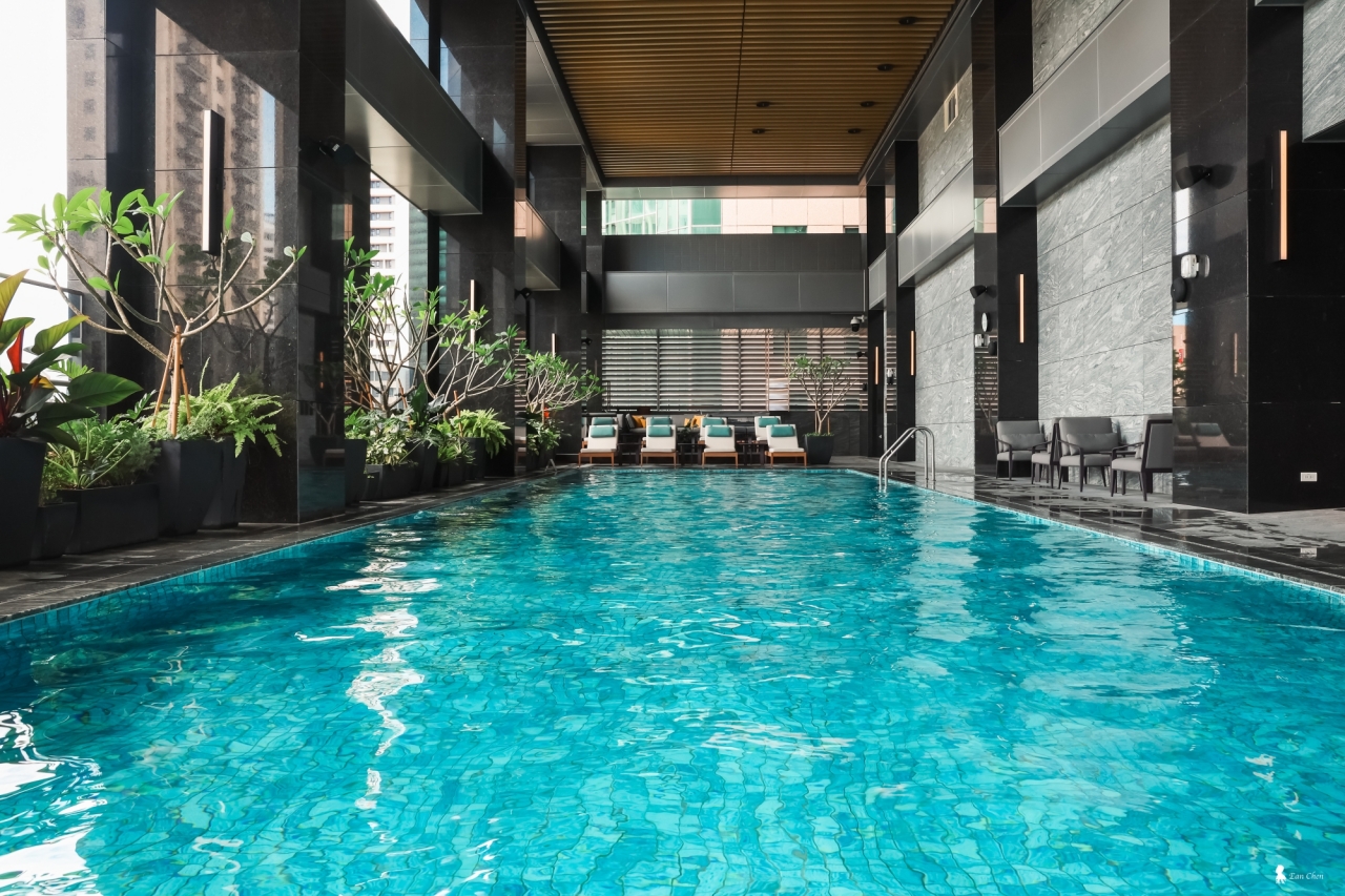 同樓層還有個不小的半露天泳池,無論是晨泳或夜晚游泳,都能舒展筋骨,為旅程注入活力。泳池旁設有休憩區,游完泳納涼小憩一番,蠻舒服。