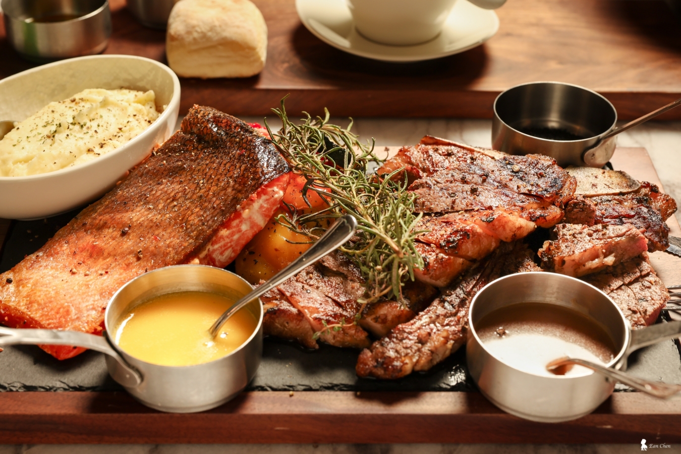 ⇑ 直火燒烤的20盎司美國丁骨牛排,烤出誘人金黃焦香,香氣撲鼻