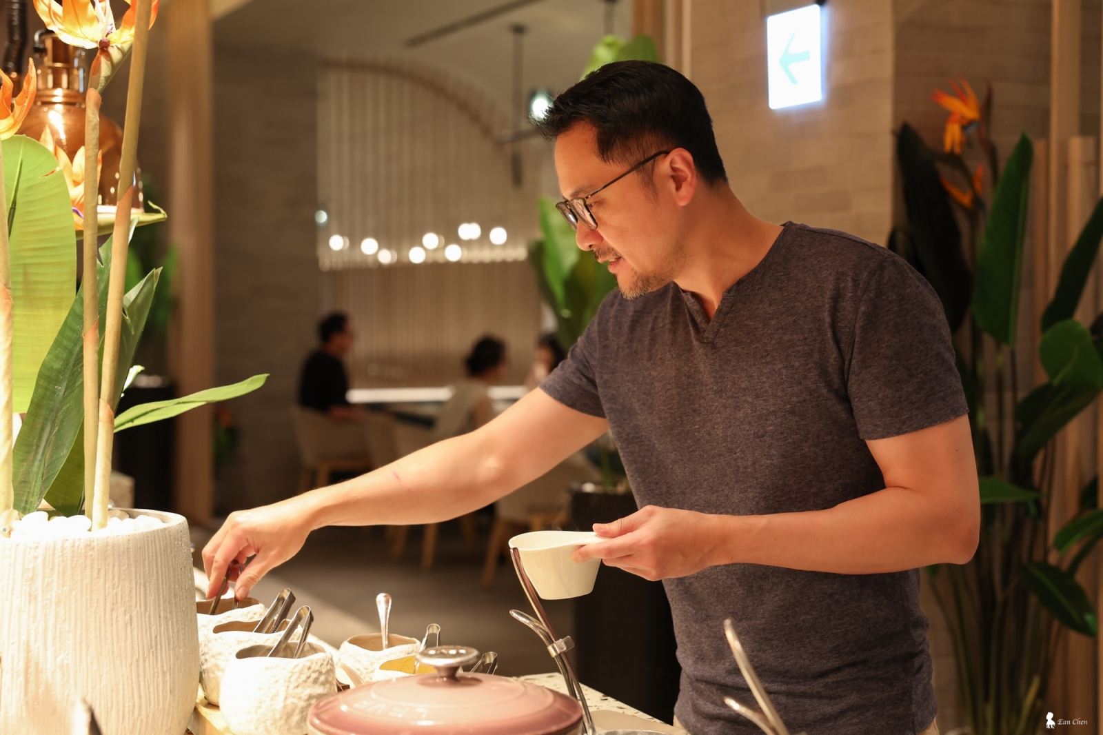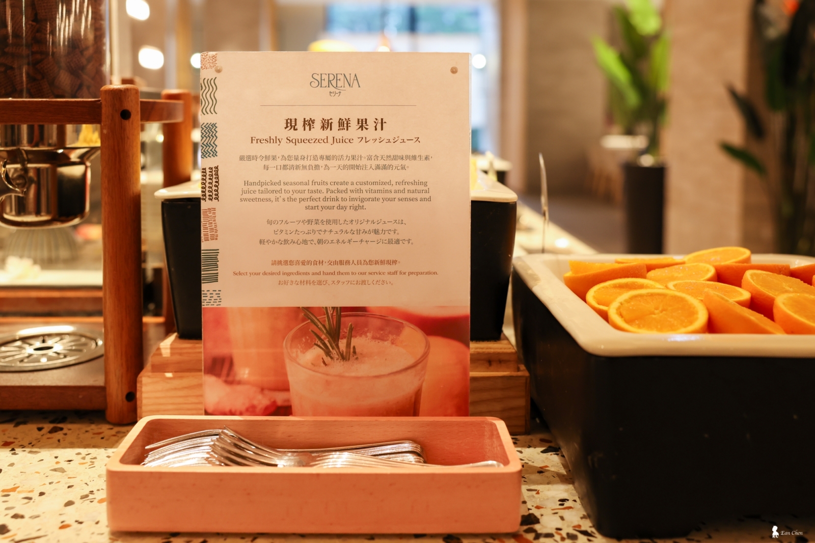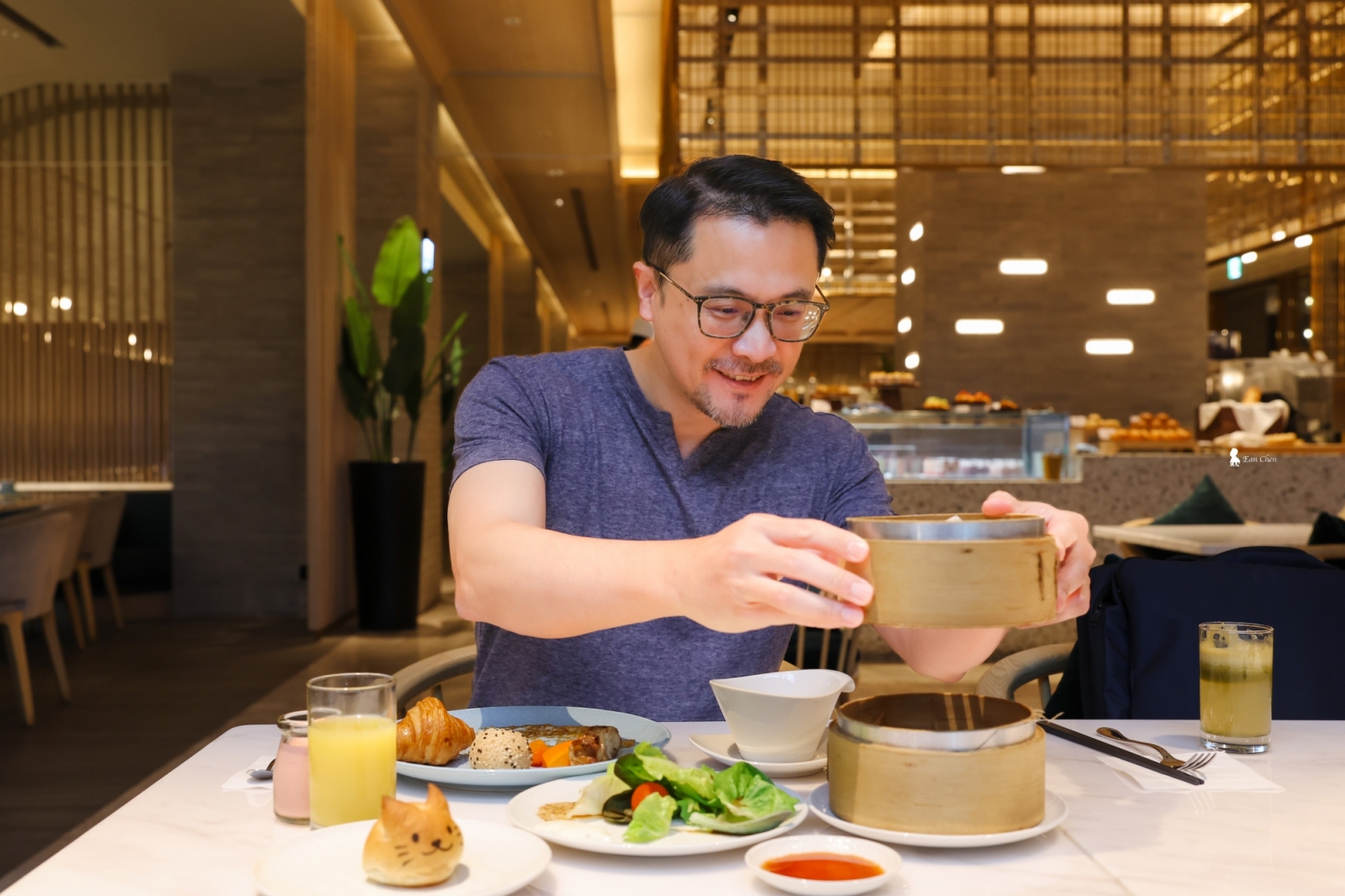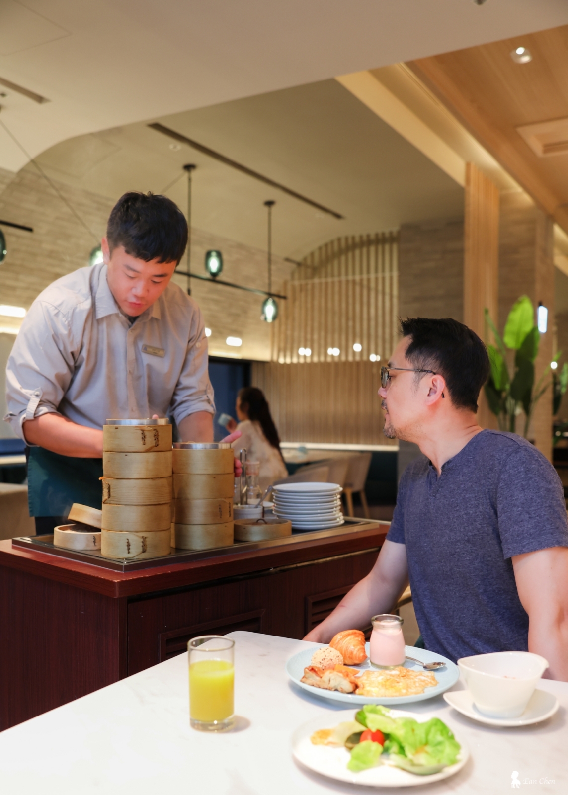 早餐同樣不負期待!自助餐菜色豐富多樣,尤其有兩大亮點令人印象深刻。首先是現榨蔬果吧,賓客可自由選擇喜愛的蔬果,工作人員現場調製專屬果汁,既健康又有趣。其次是桌邊推車服務,兩台餐車分別供應港點與麵包,幾款港點的水準媲美專業茶樓,值得一試。