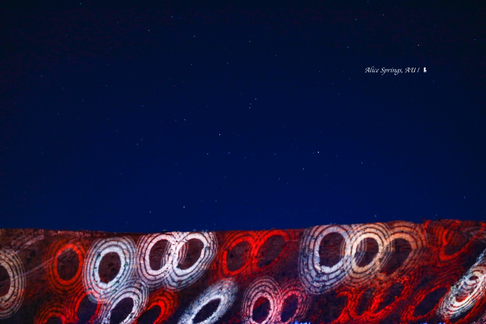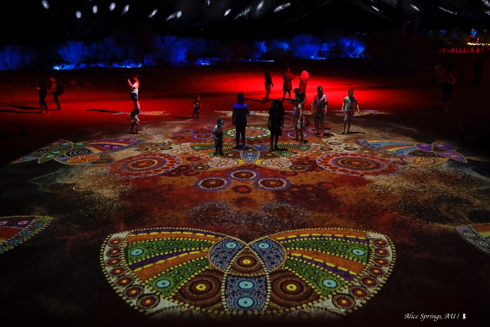 愛麗斯泉(Alice Springs),因在早年拓荒開發時期扮演重要角色而被稱為先鋒小鎮,今日這裡藝術風氣濃厚,更因每年定期舉辦號稱是世界唯一的原住民燈光節的「帕爾蒂瑪燈光節」(Parrtjima)而聞名。我在今年燈光節的最後一天來到愛麗斯泉,震撼感十足。他們將當地原住民的藝術元素,以互動式燈光投影把麥克唐奈山脈當作畫布,加上旁白與配樂來演繹原住民的故事。此外,除有 live 演出,現場的燈光裝置結合略帶空靈的電子音樂,也讓這一年一度星空下的燈光藝術節多了潮味,明年(2020)同樣將在四月舉辦,值得期待。