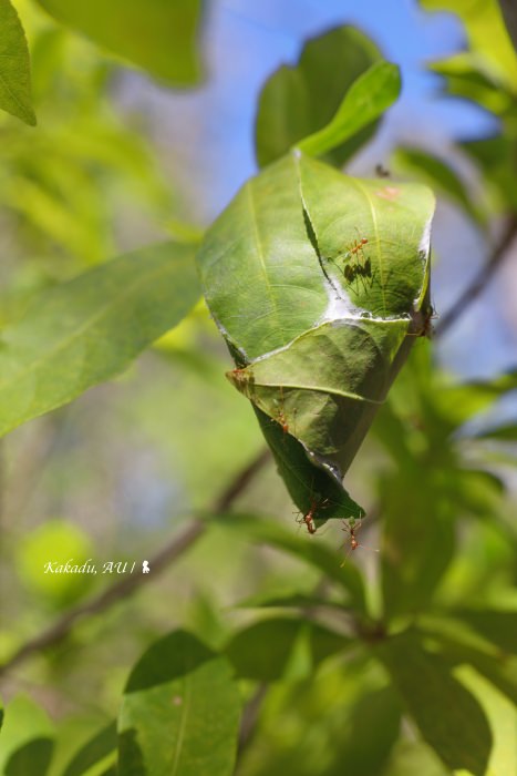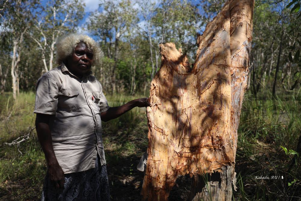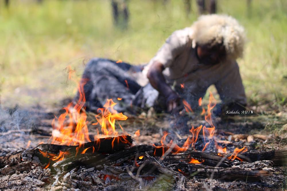 卡卡杜儘管後來也出現人煙,但也是三萬年前的事。這裡擁有澳洲歷史最古老的原住民壁畫,看著在峭壁刻畫下的猪鼻龜與閃電人,我揣想著那到底是懷抱著什麼樣的心情,是閒來無事或想警世?畢竟太過久遠,誰也無法說的實際,不如跟著當地的比尼基族來趟野炊,接真正的地氣。這日中午,銀髮黑臉的貝蒂女士給我們一頓終生難忘的野味,首先她把樹扒了層皮下來當作餐盤,烈日當空怕我們渴,她豪邁地劈下一種稱為 Water Tree 的樹,瞬間、水從樹的斷口噴發而出,嚐起來微鹹,在過去、那是他們旱季的水源。這場野地廚房的午餐,我吃了像萊姆口味的綠螞蟻當開胃菜,砍材升火烤的是從附近溪流捉的魚,鮮嫩美味,沒有餐具就徒手進食,在樹林裡席地而坐,手指剝烤山藥剝的都烏漆媽黑但不覺辛苦,能親身參與這樣一頓田野調查般的傳統炊事,實在太珍貴與難忘。