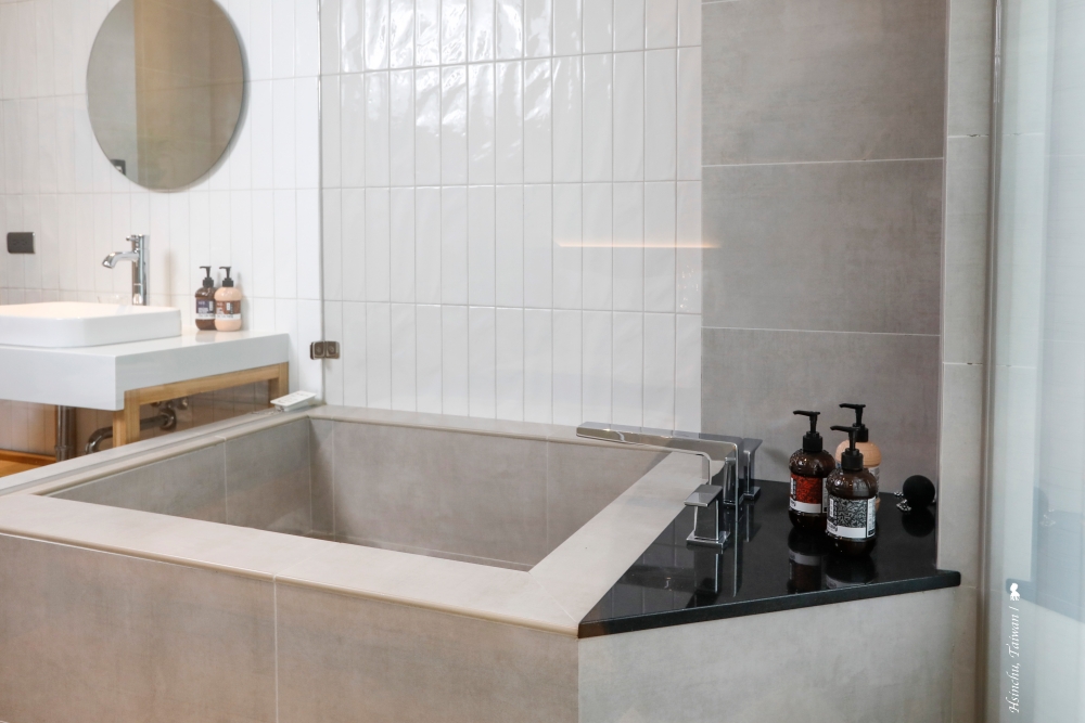 五個房間格局略有不同,兩層樓最靠近樓梯的房間設有浴池,不過整體來說,房間都不算大,因當初設計師把更多空間都留給了公共空間,對我來說,那是或者風旅的最大特色之一。三樓的公共空間有一大面書櫃,扣緊旅人可能會有的四種心情來進行選書,包括幸福、探索、療癒與享受孤獨,或許,這趟旅行的意義,就在閱讀的字裡行間裡,被不經易的獲得。挑一本書,到旁邊的小吧台泡杯茶,然後找個位置舒服坐下,主人大方分享自己珍藏的黑膠與 CD,音響也很不錯,當唱針一放下,隨著樂音播放,時間轉速也被放慢下來,就像我從架上取下的書名那般:歲月靜好。