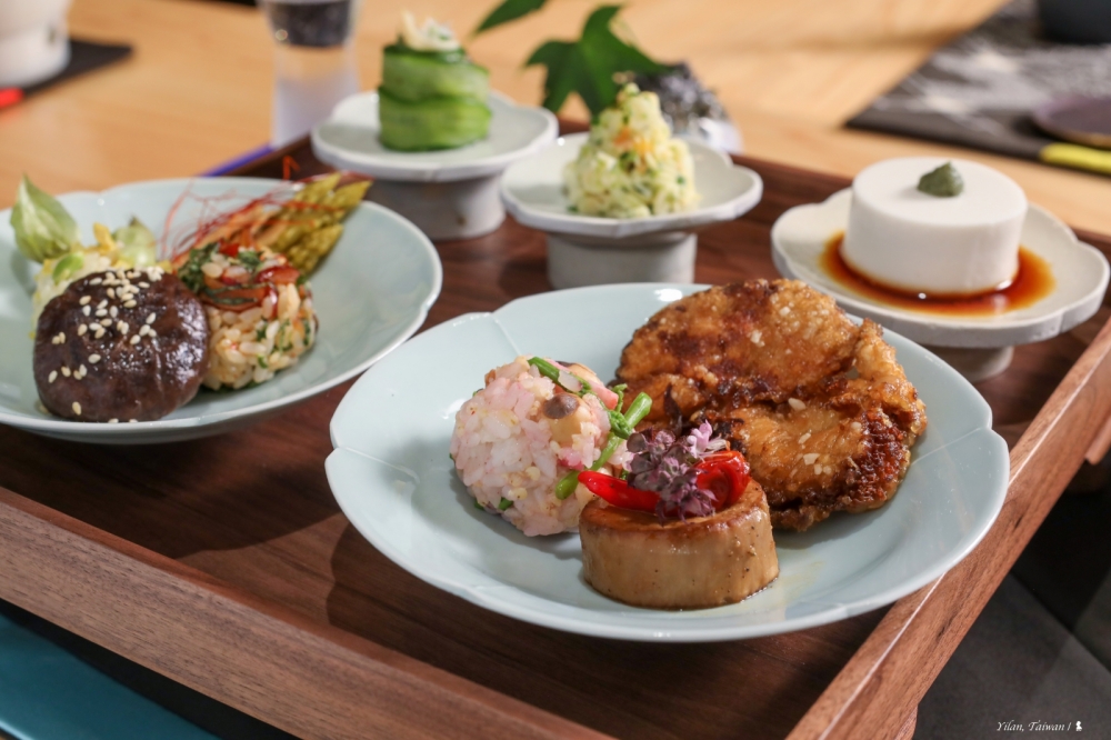 我特別欣賞與享受那份依旬而食的理念,大部分是使用在地食材,有些蔬果甚至是來自主理人的家中菜園,像是深得我心的鮮採竹筍草菇湯就能嚐到當季鮮甜,而口感很好的花生豆腐是來自當地一位出家人的真心實意,另外藏有芝麻葉與杏鮑菇片的小黃瓜卷則是呈現了細緻的自然滋味。不光食巧,依據不同季節還會提供不同口味的三顆飯糰飽腹,此外會固定出現的猴頭菇炸排也是有滋有味。一餐下來份量剛好,在細嚼慢嚥中,人的心也隨之靜定下來,準備開始接下來的身心療癒之旅…