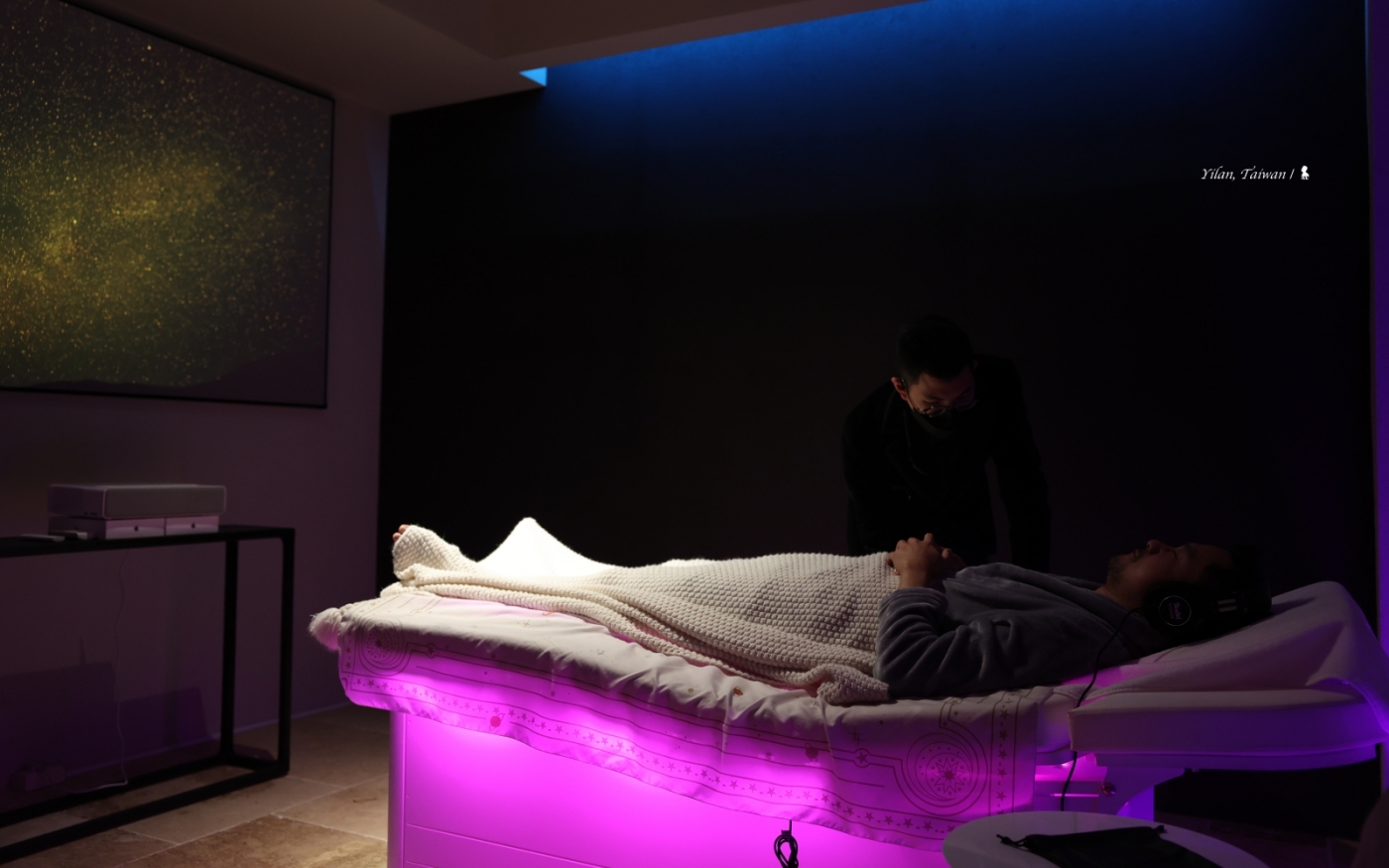 到過死海嗎?若還沒,在這就可體驗銀河星空下的零重力漂浮。使用美國原廠進口的零重力漂浮艙,當漂浮在等同死海密度的鎂鹽水,能讓全身處於反重力的無壓狀態,據說 50 分鐘的漂浮能獲得相當於 4~6 小時的深度睡眠。體驗時,上頭艙門會關閉起來,裡頭幾乎全暗,搭配讓人放鬆的音樂,會有種想像漂浮在無重力外太空的奇特感受。近一小時的時間裡,只有你和你自己,放空不錯、睡著也很好,倘若剛好心中有事,就自然讓思緒放飛,暫時保持旁觀,或許就理出自己內在的真正想法。看似無所事事,其實也是種修行。