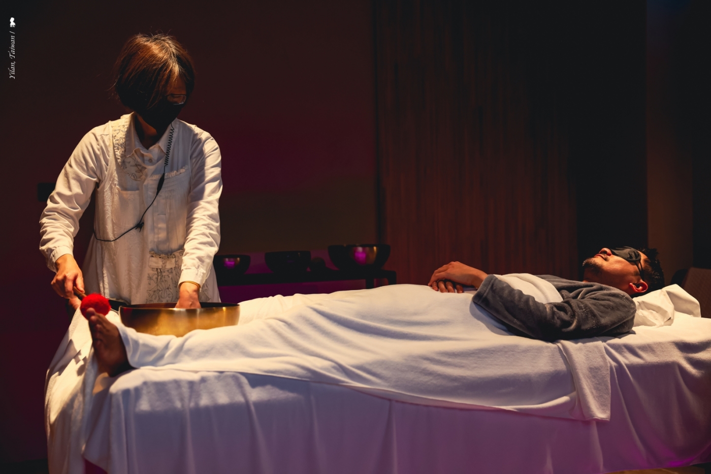 這回我花了整天時間,除了上述兩項,還體驗了包括運用科技流體力學按摩儀器的進階專精式按摩,讓我出痧、減緩近期的工作疲勞;躺在水床上增強感受頻率的頌缽音療,也是該體驗的進化版。此外,還有戴上強力遮光眼罩後置身在強烈紅光中的「AGLEX最先進360度紅光療癒」艙,初能表示其具有刺激膠原蛋白增生與加速健康細胞再生等效用,最後則是頭戴耳機伴隨量子音頻讓大腦獲得放鬆、進入深度休息的「Welnamis 量子音頻和振動療癒」。幾個小時下來,感覺跟抵達時最明顯的不同是疲憊感的消除以及獲得全然的放鬆感。主理人說每個人體驗後的反應與感受都會不同,我大概可以理解,就像催眠、靜坐甚至是喝完一杯好茶,都會帶來不盡相同的反應,若有機會可親身體驗,感受 Rest、Refresh 與 Reset 後的那份輕鬆自在。
