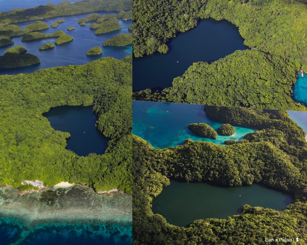 ⇑ 從空中俯瞰水母湖,仔細看還能發現水母