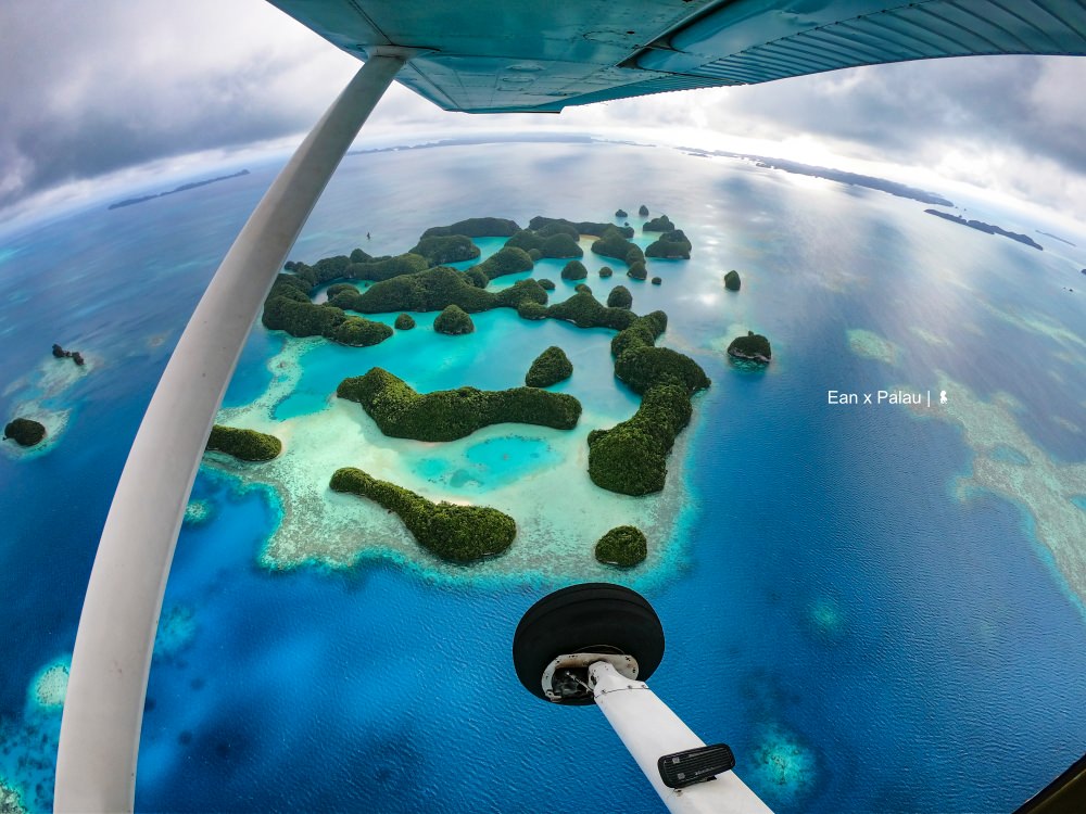 依照路線與飛行時間,分為 A、B、C 三種,可說是從精選到全覽版任君選擇,價格從美金 140 到 260,這回我搭乘的是190美金的 B 路線,除了 A 路線的克羅地區(Koror area)、水母湖、牛奶湖,再延伸到七十島嶼及知名潛點藍角,我覺得相當剛好也非常過癮。這趟沒有冷場的 40 分鐘飛行,我很幸運是坐在副駕駛座,很多時候是在強風中把鏡頭伸出去取景拍攝,但神奇是內心卻很平靜與享受其中。從空中視角欣賞彷彿遺世獨立的群聚島嶼,美的像是動畫片,環礁、沈船、浪花,拍攝到許多令人感動的美景。飛機尚未降落,已萌生有機會也想為此次空拍作品舉辦一場攝影展的念頭。彷彿有個使命、要讓更多朋友有機會也能欣賞到一幅幅上天為世界創造的人間風景。