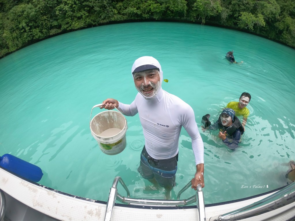 當我閉氣潛下水面約 2-3 公尺,挖了兩手白泥,忽然這感覺怎有點熟悉,是啊,就是今年五月遠赴冰島的藍湖溫泉!除了帛琉牛奶湖的海水不溫不熱,其餘翠玉般的水色及能美膚的白泥可都如出一轍,原來,這兩處同樣是火山噴發所形成,沈積海底的火山灰變成今日讓遊客趨之若騖的養顏聖品,在地球遙遠兩端擁有類似的體驗,我還是頭一遭。