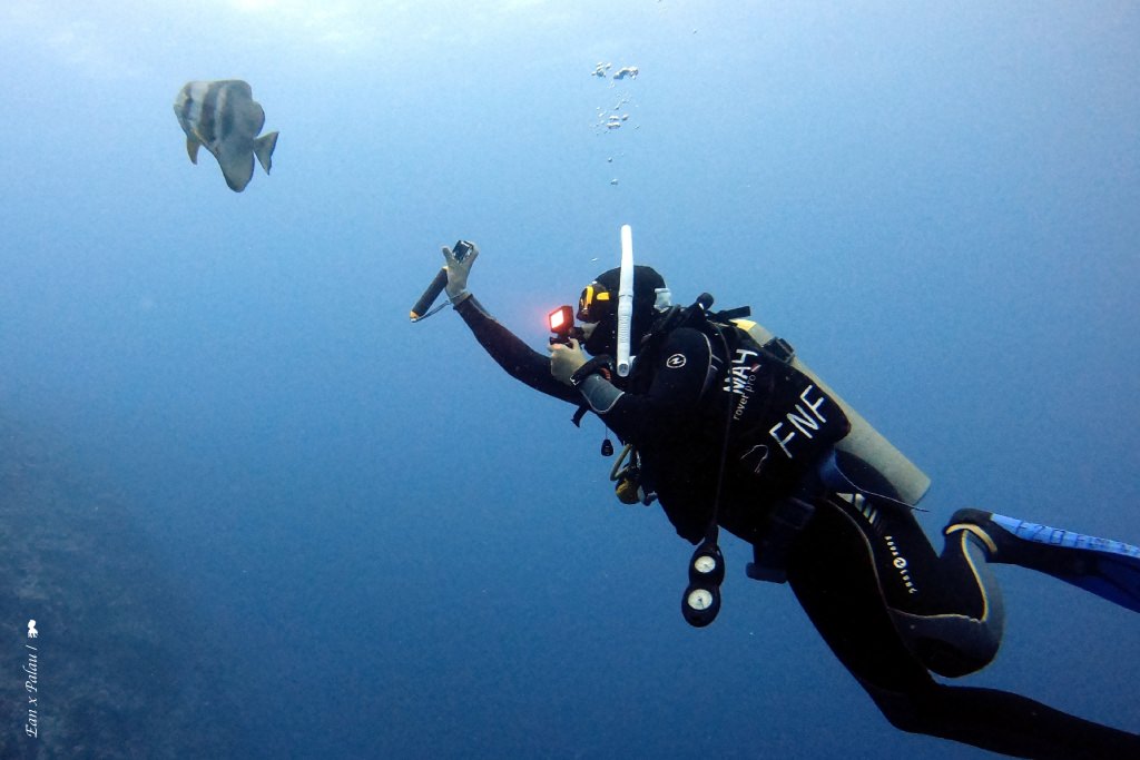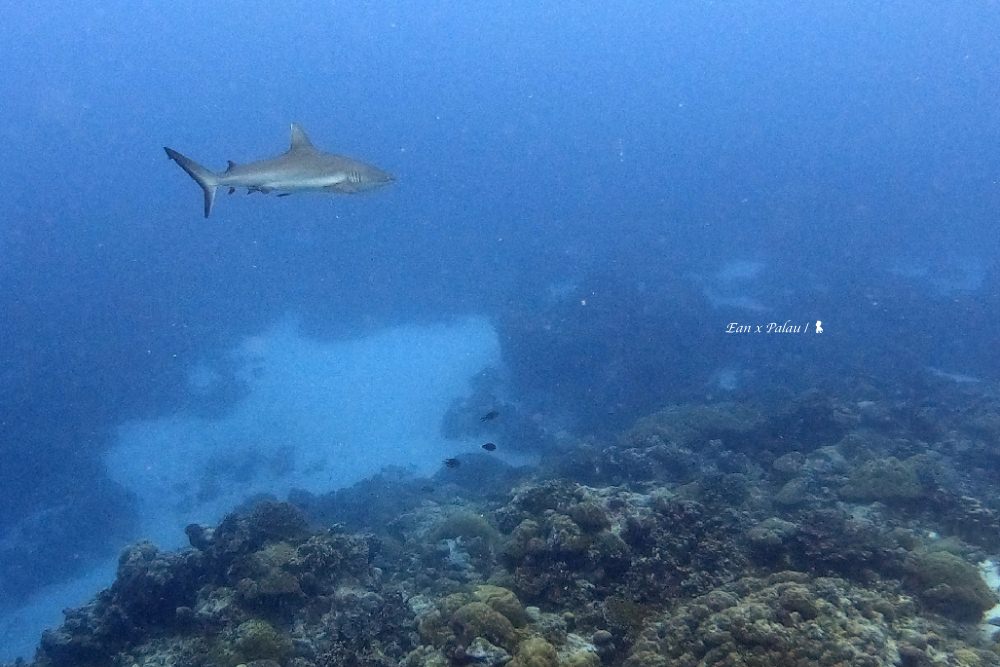 首次在帛琉的一支深潛,就獻給烏龍水道(Ulong Channel)潛點,先來到 Fish N Fins 潛店領取潛水裝備,再登上很高級的潛水住宿遊艇「Ocean Hunter」號,在享用船上美味的自助午餐前,專業導潛帶我們來到帛琉著名的這潛點。採背滾式入水,毫無心理準備的是約莫才下潛 5 米,就看見一隻鯊魚從前方游過,彷彿是隱形著、我的存在絲毫沒打擾到牠。我最深下潛到 26.4 公尺,期間看到超過廿隻大小不等的鯊魚,太夢幻的體驗,不怕人的還有多尾色彩鮮豔的燕魚,甚至想拿 GoPro 跟他們自拍都能達成。