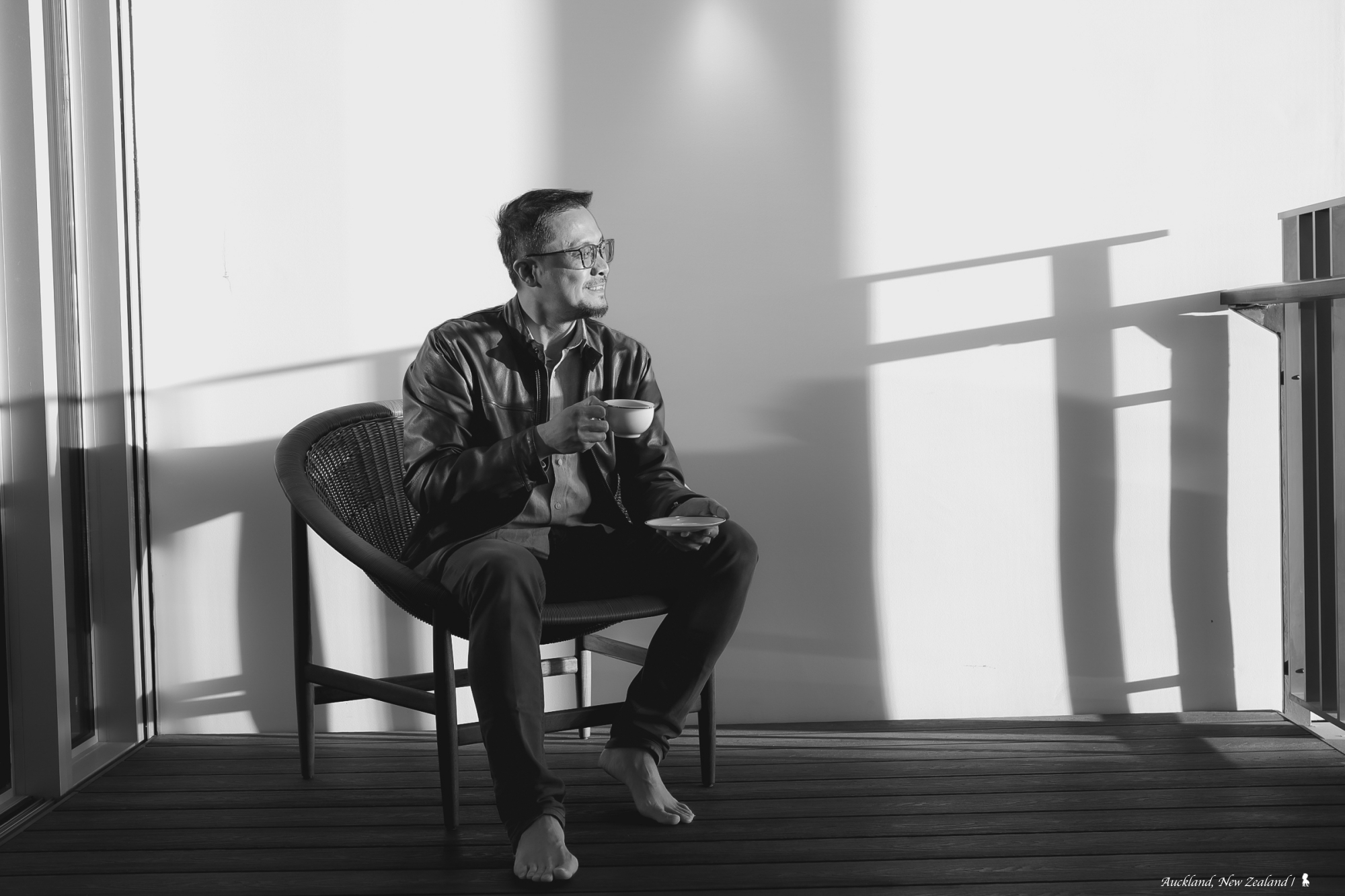 我很喜歡這間客房的重點之一,是超級大的半露天陽台,在設計上非常成熟與周到。開闊、通透又保有隱私,這不容易!先說隱私部分,每間客房的露台是與隔壁客房完全阻隔,能讓房客享受那份自在。而先前有提到,可從客房面板控制露台的大面紗網,當調整成垂直角度時,就是完全通透無遮蔽,只不過我房間非面向碼頭,不然景觀應該蠻厲害,雖無碼頭景,但我有光影。午後,陽光穿過格柵,美麗疏影落在木頭地板上,現場磨豆來手沖一杯好咖啡回敬這份美好,這絕對是旅途上最享受的時刻之一。