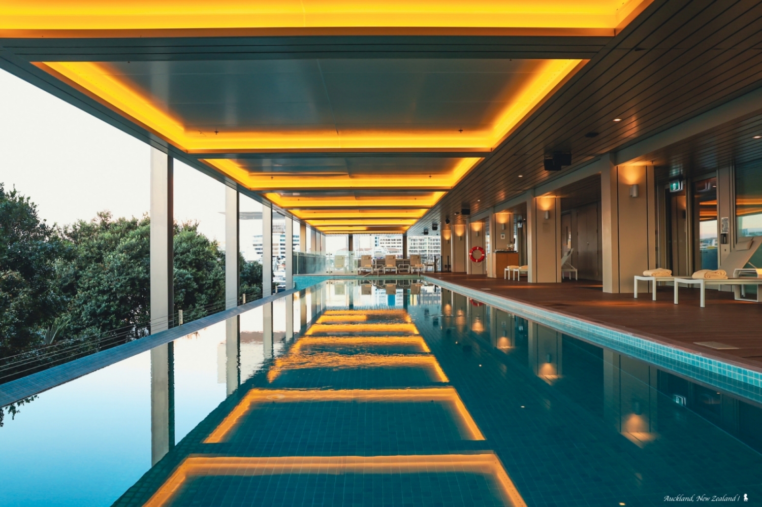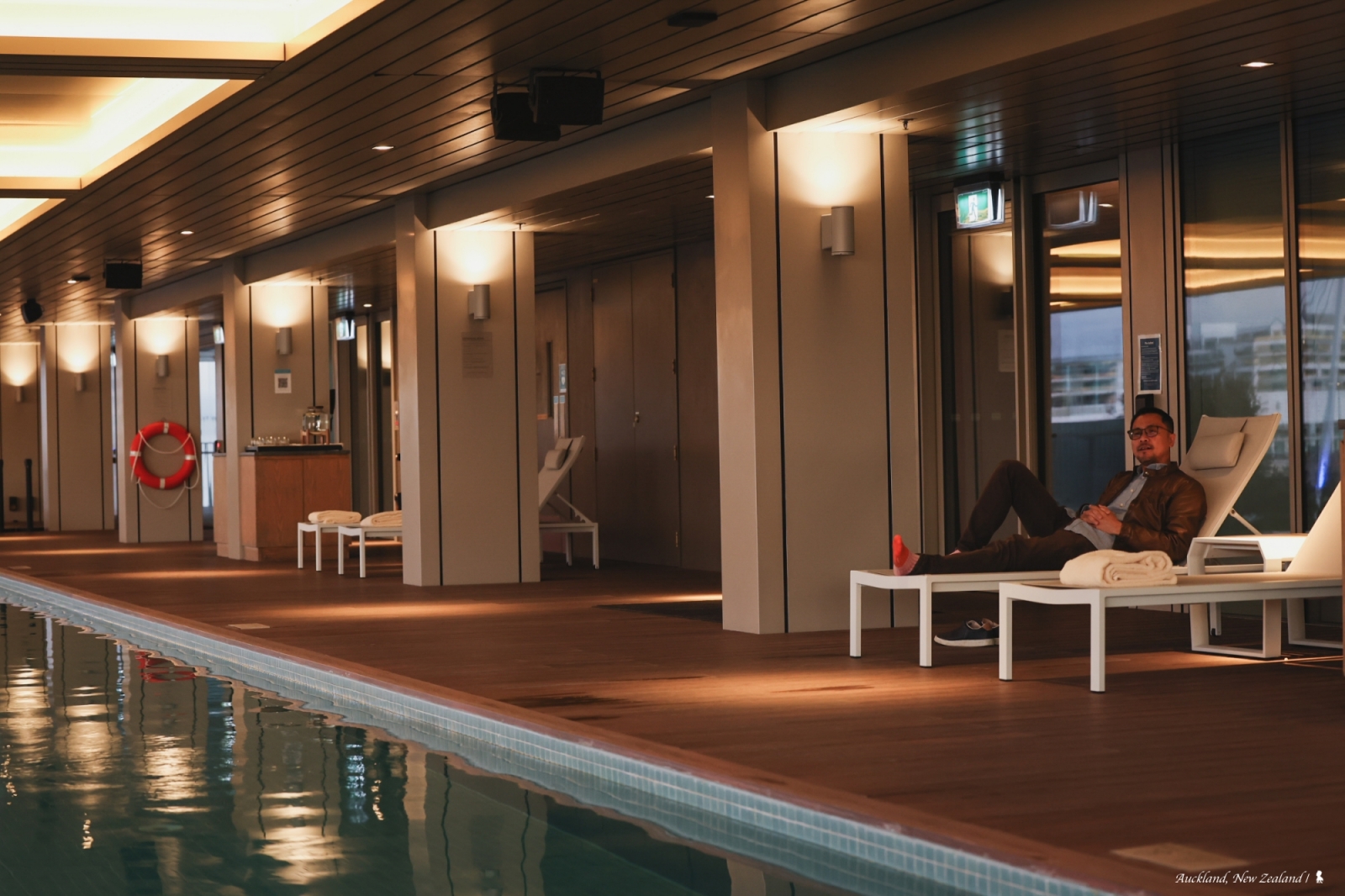 這回入住我有個失策是沒帶泳褲,因造訪時的五月在紐西蘭已準備入冬,雖事前知道有泳池,但沒想到的是,該 25 米長的半露天泳池竟是貼心提供溫水,且游完泳後,還可順便使用室內的水療池與桑拿,質感相當不錯!除了游泳,泳池區也是個很棒欣賞碼頭與奧克蘭天際線的所在,高度剛好也恰巧避過一些行人或嫌惡設施,是個蠻好取景拍攝的點,若有機會入住,不妨在薄暮時分到這拍幾張美照!