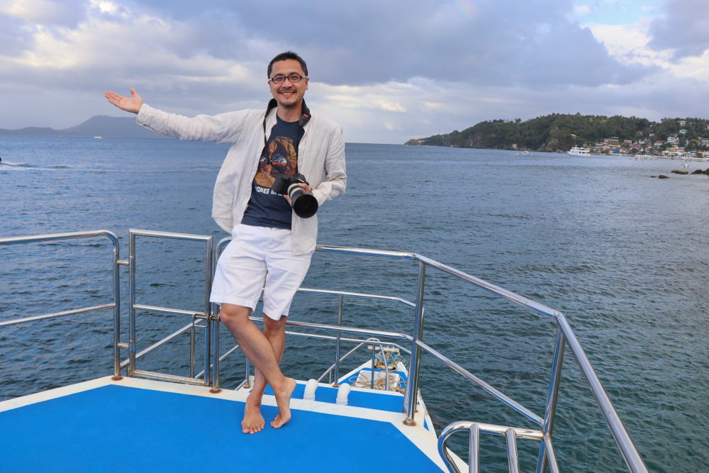 在不少地方都曾搭船出海賞日落,印象很深刻的包括希臘聖托里尼關島與北海道釧路,不同緯度與溫度,造就了不同風景。上個月我在菲律賓馬尼拉南邊、一座被暱稱為 PG 島的 Puerto Galera,受當地潛店華人老闆的熱情邀請,我們登上遊艇,經歷一趟節奏很快、目不暇給的夕陽巡航之旅,景色多變是我搭過的這些趟之最。若你也是攝影愛好者,來到 PG 島,不要錯過這份大自然的禮物。