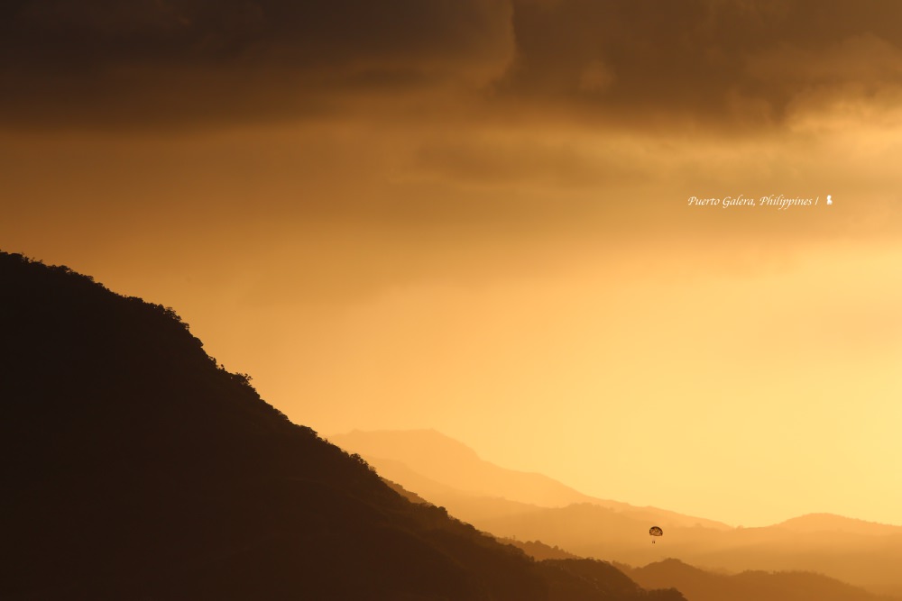 ⇑ 遠方層疊的山與海上的拖曳傘,多美的風景