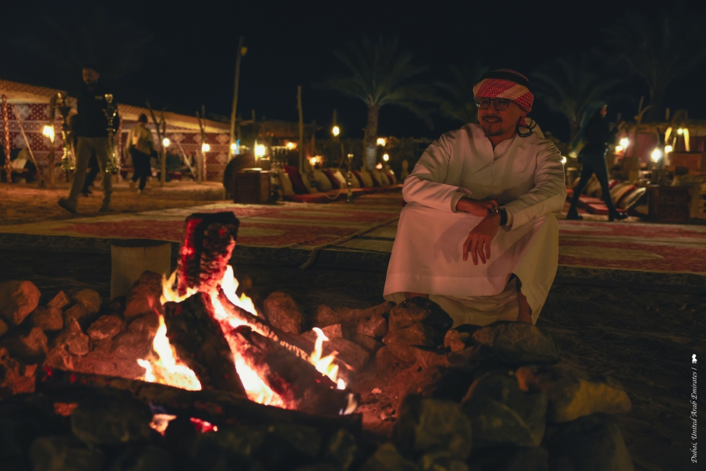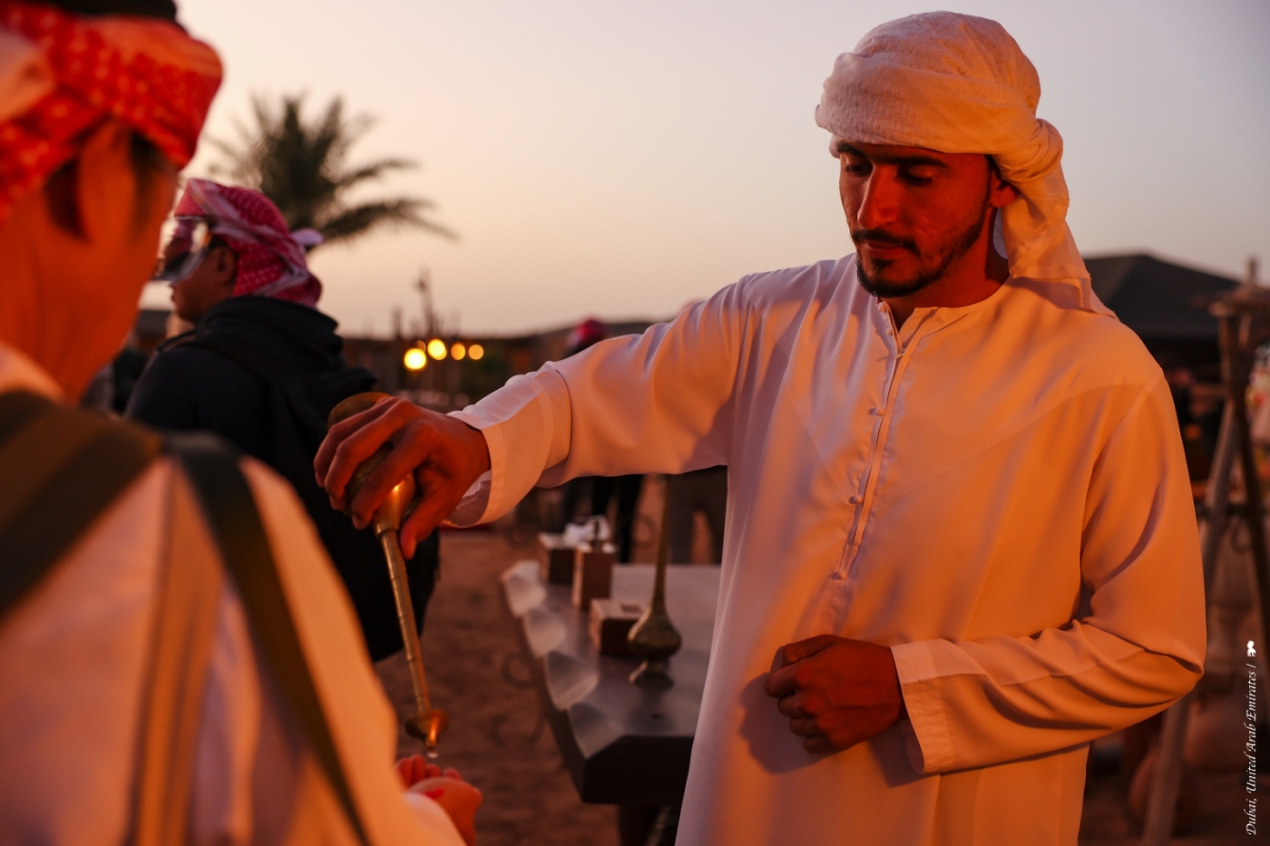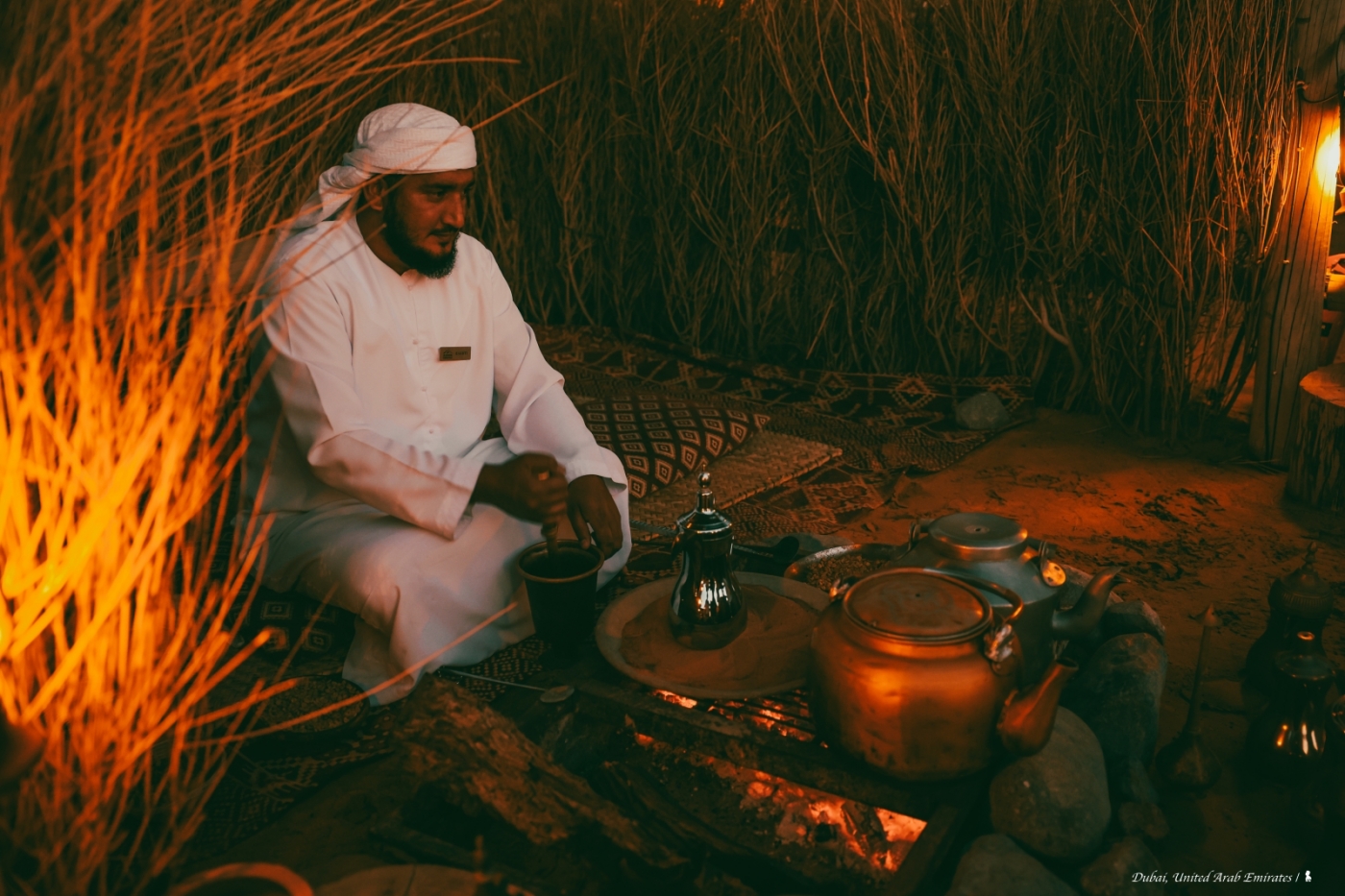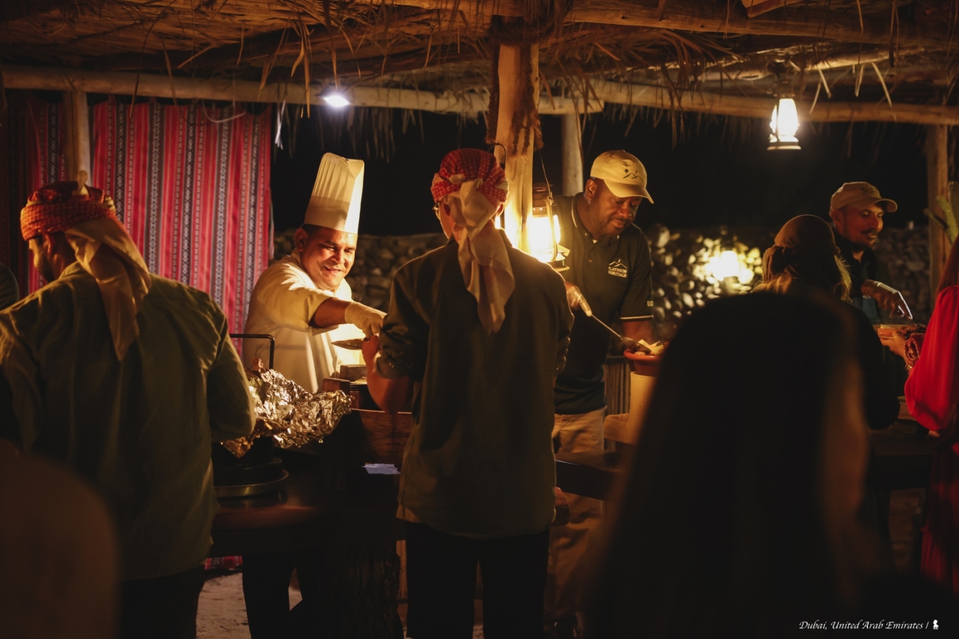 他們希望讓從世界各地前來的遊客,都能看見最真實的在地文化。日落後進入生好火的貝都因人營地,能看到他們現場製作麵包與傳統咖啡的過程,正式用餐前會特別召集大家來介紹傳統佳餚背後的文化意義。等用餐差不多了,便是輕鬆的音樂表演,捨棄比較容易炒熱氣氛的肚皮舞,因他們認為那是來自埃及、無法代表杜拜文化,因此決定以一種轉動獵槍作為重點表現的阿聯酋傳統舞蹈「Yola」及傳統打鼓進行表演,向遊客展現的同時也是藉此保存杜拜慢慢流失的傳統文化,很用心。