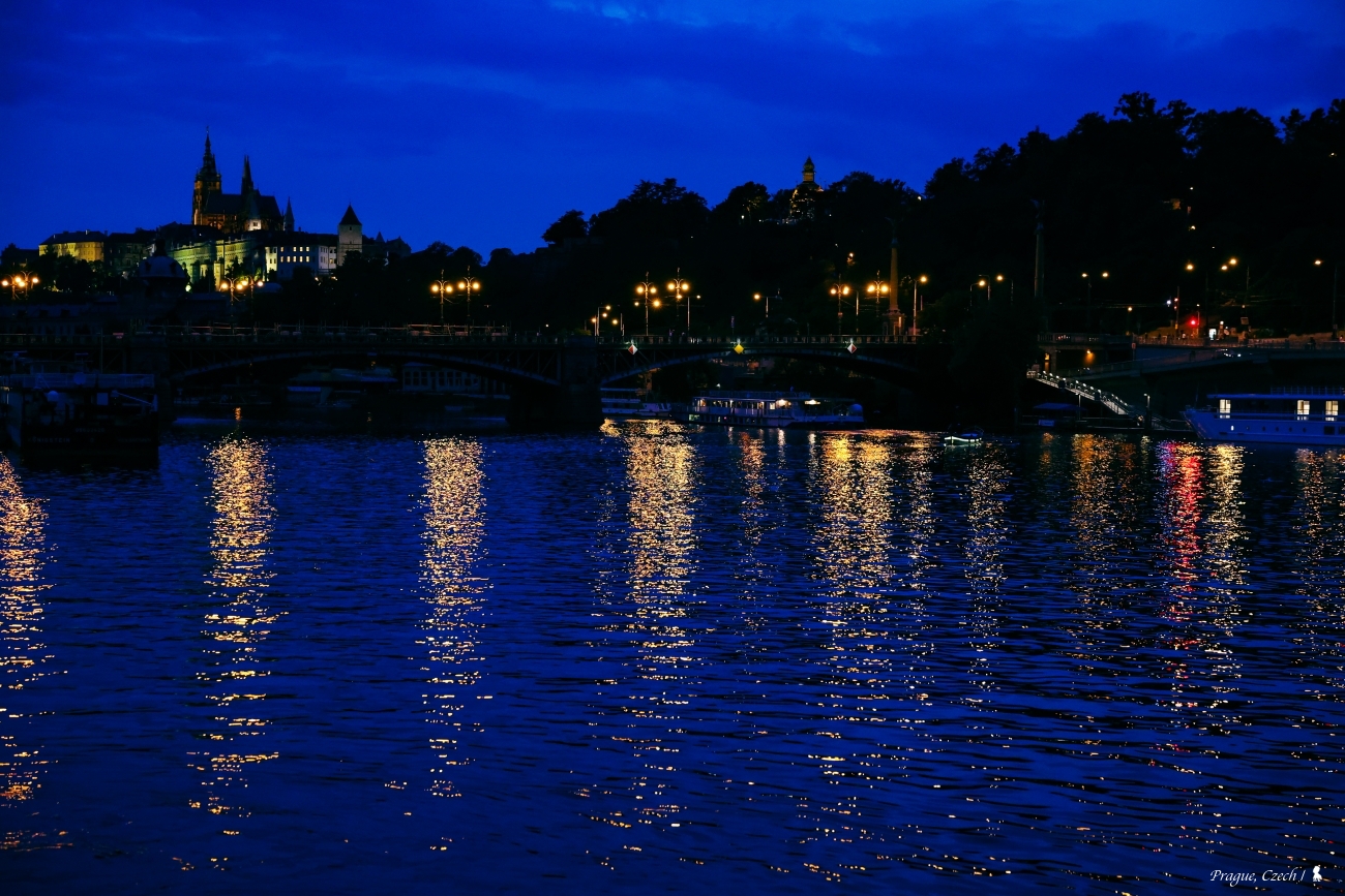 Night > 遊船伏爾塔瓦河賞布拉格藍⾊夜景