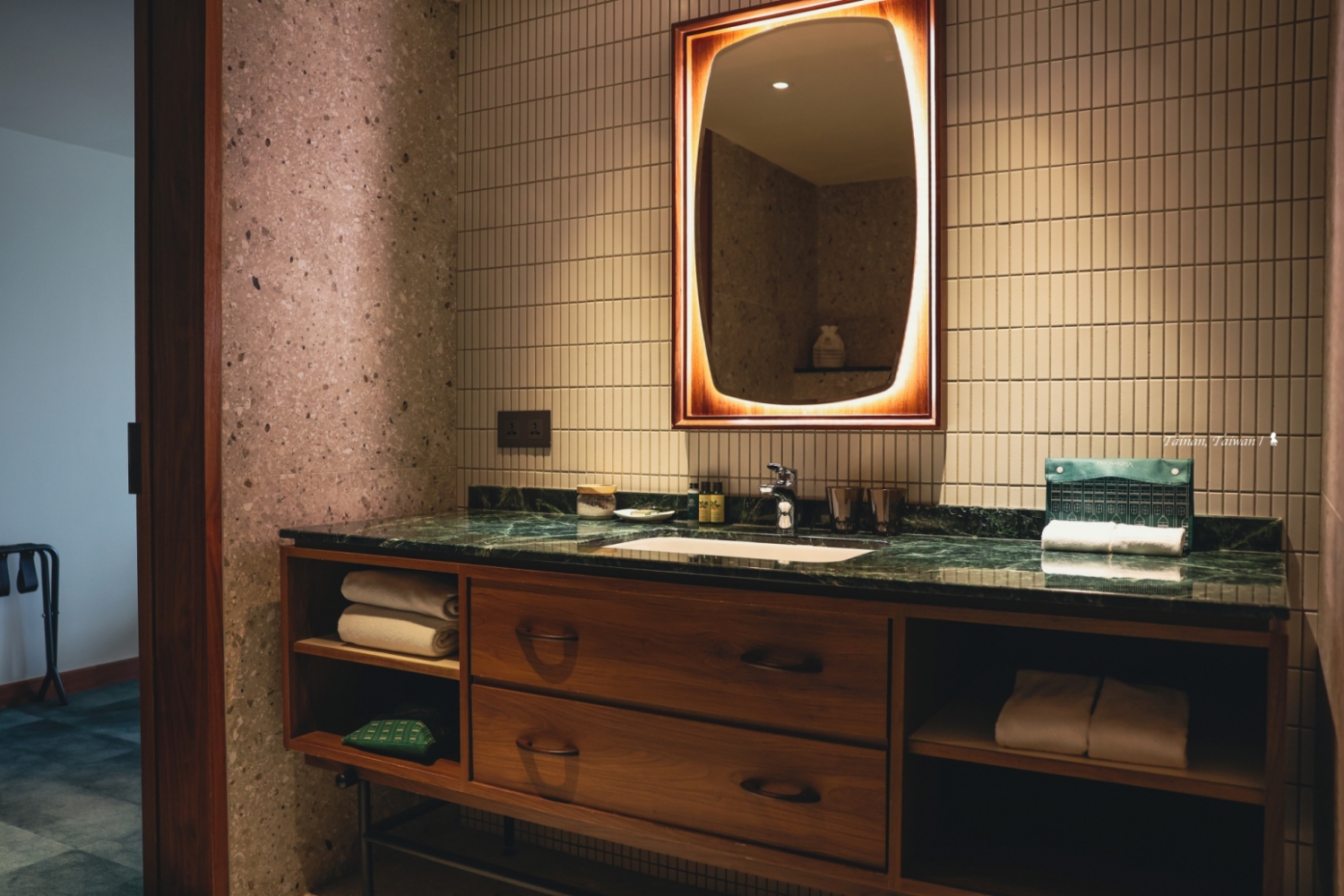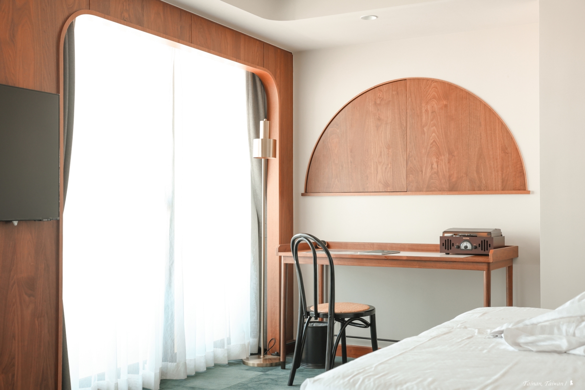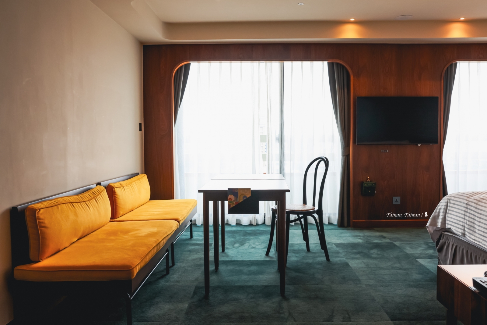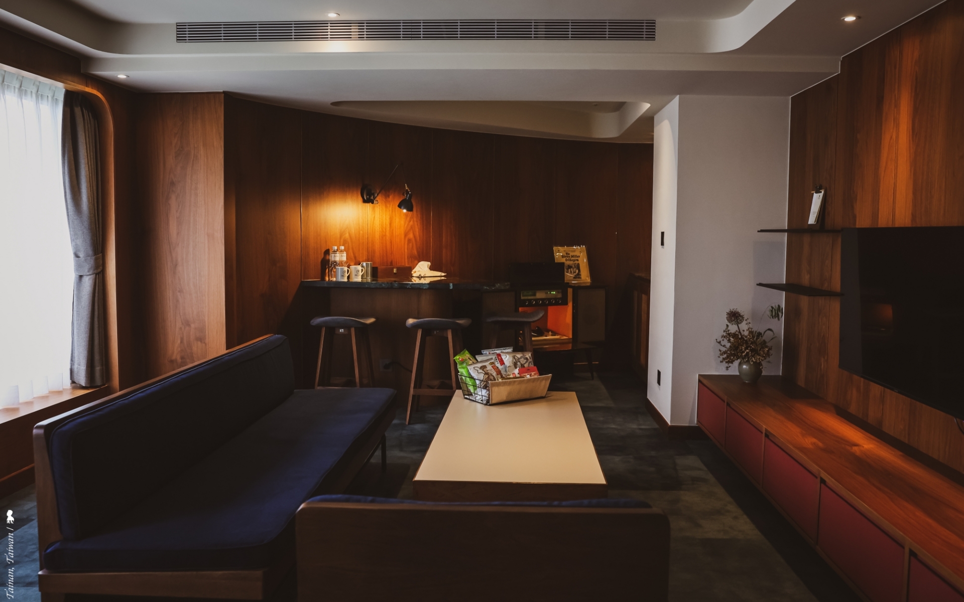 5 種房型大小與特色略有不同,最具代表性的客房還是當推改裝自原本總統套房 1208 號房的「南隅套房」。「本事空間製作所」設計到位,將 18 坪大的空間切分為廊廳、客廳、轉角酒吧以及臥室,其中還擺放了一台能正常播放的落地式古董黑膠唱機。老件,光影,窗外還可一攬赤崁樓,若喜歡復古風格,入住這間應會蠻對味。