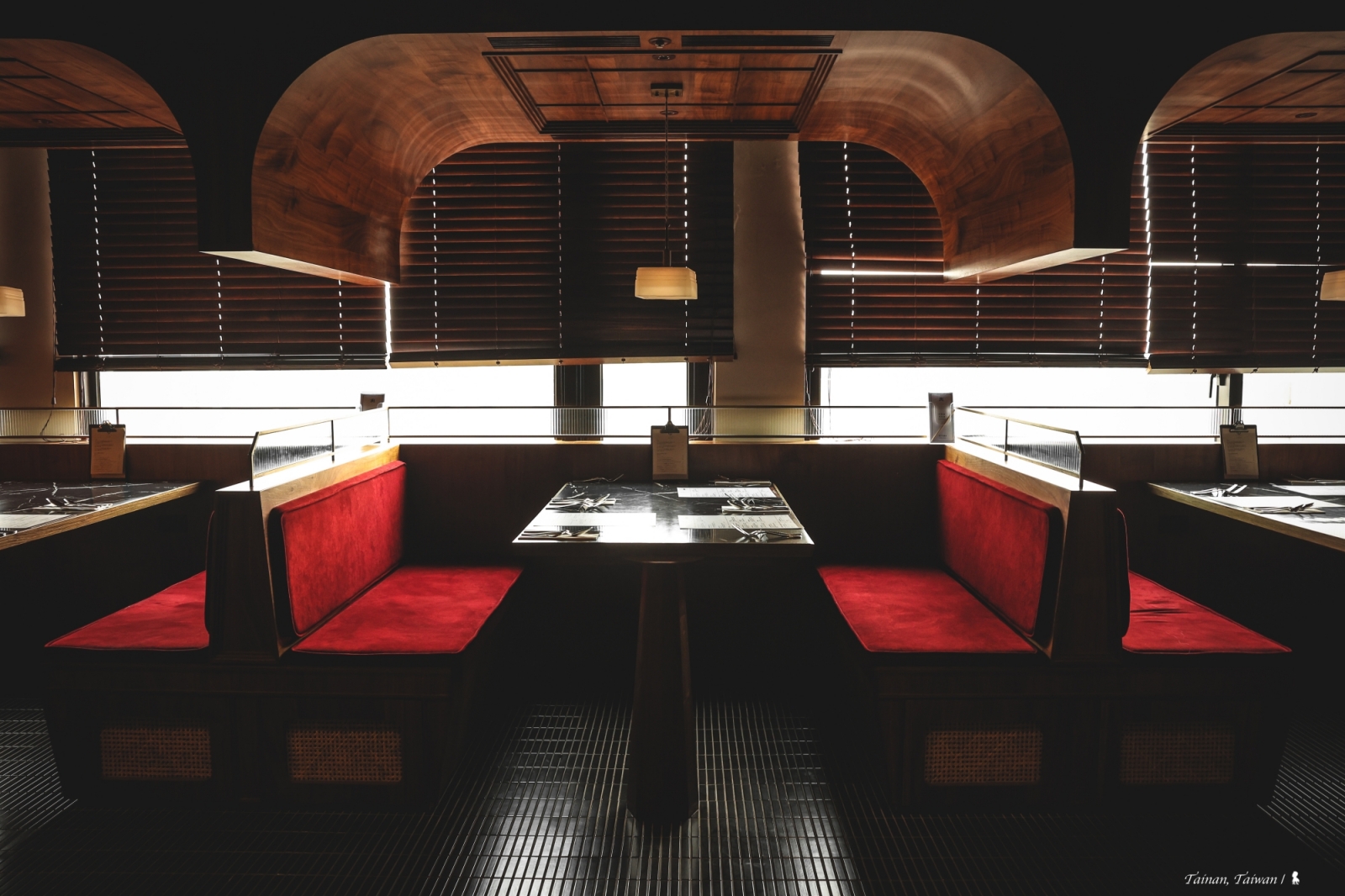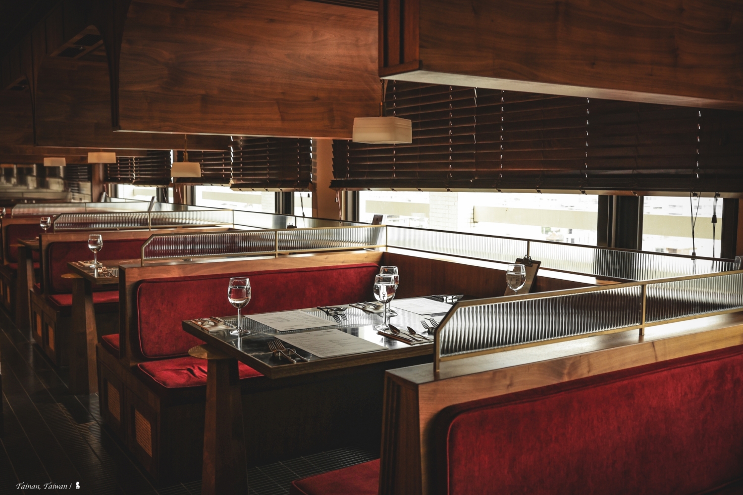 飯店頂樓 R 層的「圓頂西餐廳」是台南歷史最悠久的西餐廳之一,據說是老台南人的相親聖地,大概就是北有波麗路、南有圓頂的意思吧!我特別喜歡一進門右手邊的座位設計,以木質結構採用圓弧拱型,加上巧用紅色絨布面椅,那絕對是重點所在,用餐於此有種置身歐洲歌劇院或踏上懷舊奢華火車的感覺,氣氛滿點。