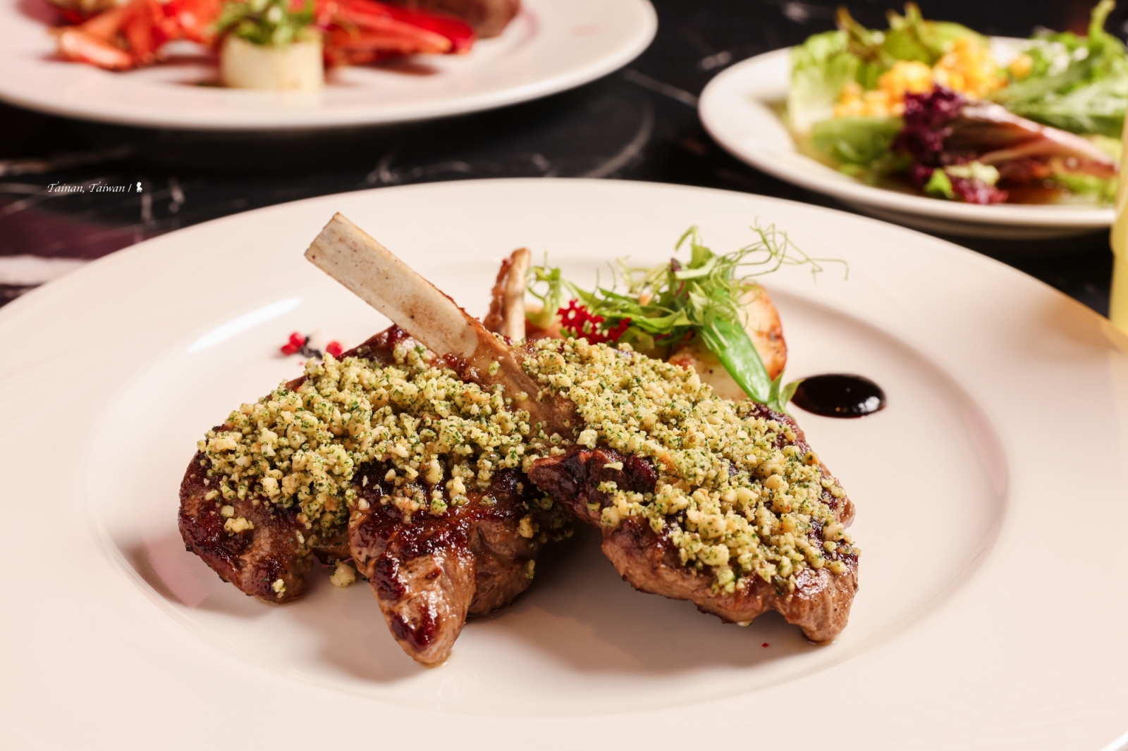 ⇑ 「帶骨小羔羊烤堅果 薄荷草醬」NT$ 980