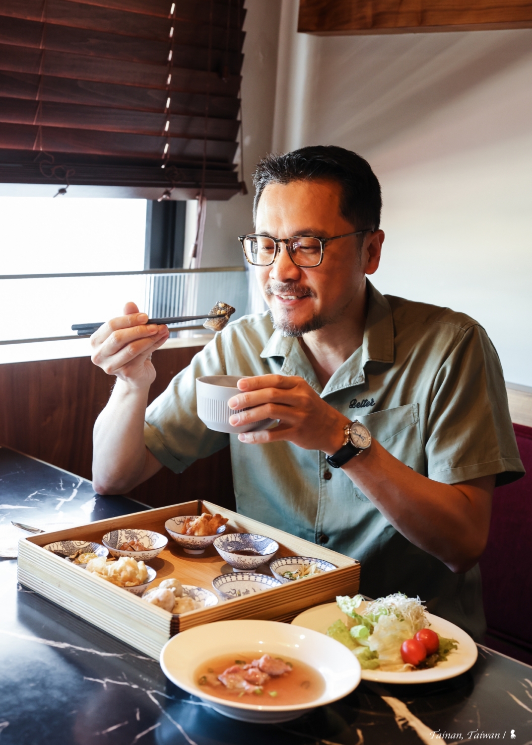 用餐形式是採點主餐搭配自助吧,從沙拉、湯品、義大利麵等熱食、到甜點水果,共計超過30款餐點,超乎我期待的是自助吧上的餐點都有一定水準,不是在湊數用的。用餐後,可試試冰櫃裡的台南傳統吧噗冰,很有古早味的紮實感。這天是是平日晚上用餐,放眼望去將近客滿,在當地受歡迎的程度可見一斑!若來入住想要上來用餐的話,建議至少一週前要先預約,不然下榻南隅還向隅那就可惜了。
