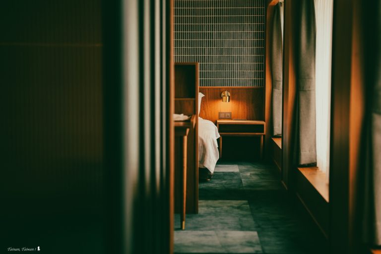 天下南隅  90 間客房共分為 5 種房型,從背包客的上下鋪青年旅館房型到 18 坪套房,儉奢由人。若看過 1.0 時期的飯店老照片,會訝異改裝幅度原來非常大,顯見擔任統籌設計「本事空間製作所」的復舊如舊功力、品味及用心,以深色木頭搭配金屬古銅,還有自帶南部懷舊氣息的藤編,打造出台版「大亨小傳」的輕奢復古風情。沒浪費臺南雄厚的文化資本,客房內為旅客精挑臺南具特色的工藝選物,放在 Mini Bar 上裡面盛裝茶包與咖啡包的金屬圓罐是來自鄰近傳承近一甲子的「隆興錏鉛店」,另外像是印上飯店窗框造型的備品袋、吹風機袋,則是來自百年布莊「錦源興」。我這回是入住附有戶外專屬小陽台的豪華雙人房,因此多了一個綠色布袋掛在電視下方,打開後讓我莞爾一笑,裡頭裝著阿嬤家的蚊香,還附上火柴,那份貼心是要讓房客在黃昏時分能提著府城蚊香袋坐在戶外,不受干擾的享受薄暮下悠閒的南國風情。